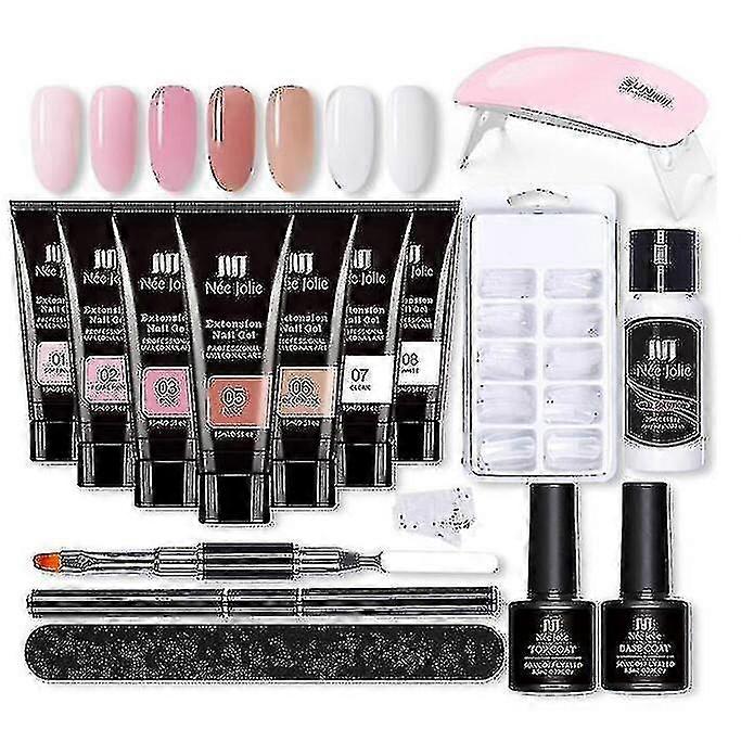 Extension Gel Nail Kit - Nail Enhancement Gel 7 Colors Pink Nude All In One Kit With Nail Lamp
