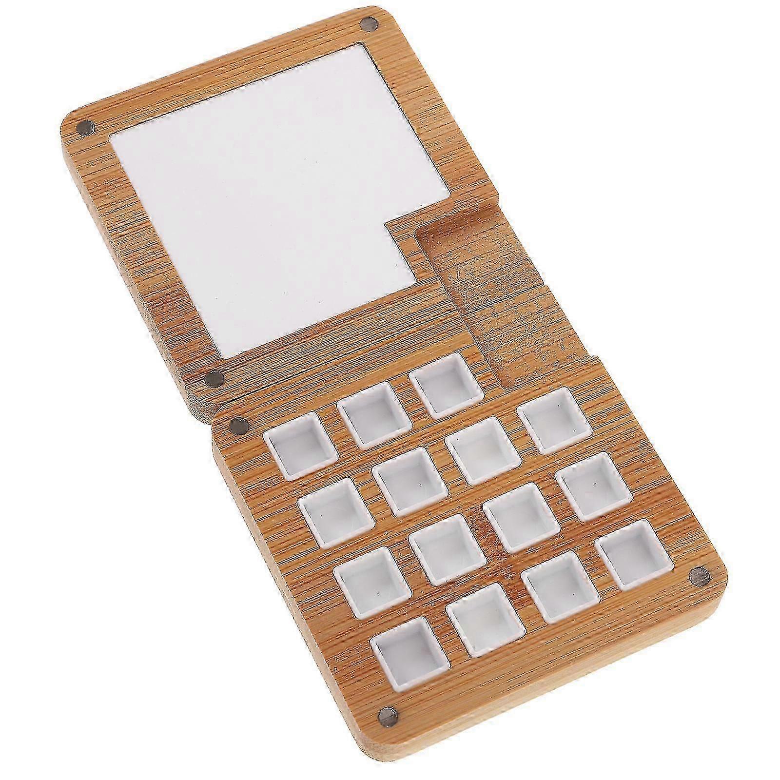 Portable Wooden Watercolor Paint Case with Magnetic Lid - 8x8cm Light Brown
