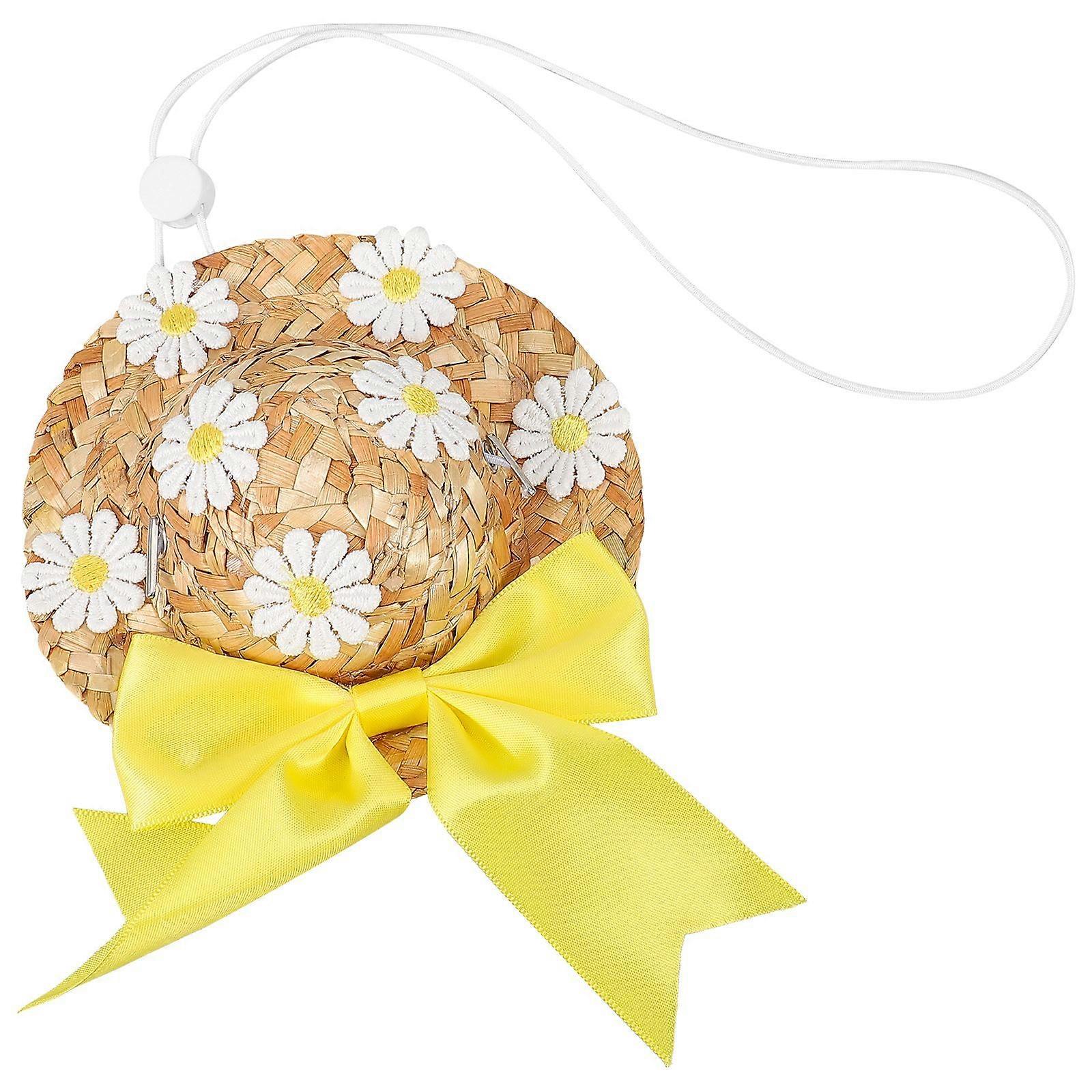 Pet Floral Straw Hat Dog Spring Summer Sunhat Handcrafted Woven Straw Hat - Size S (Yellow)