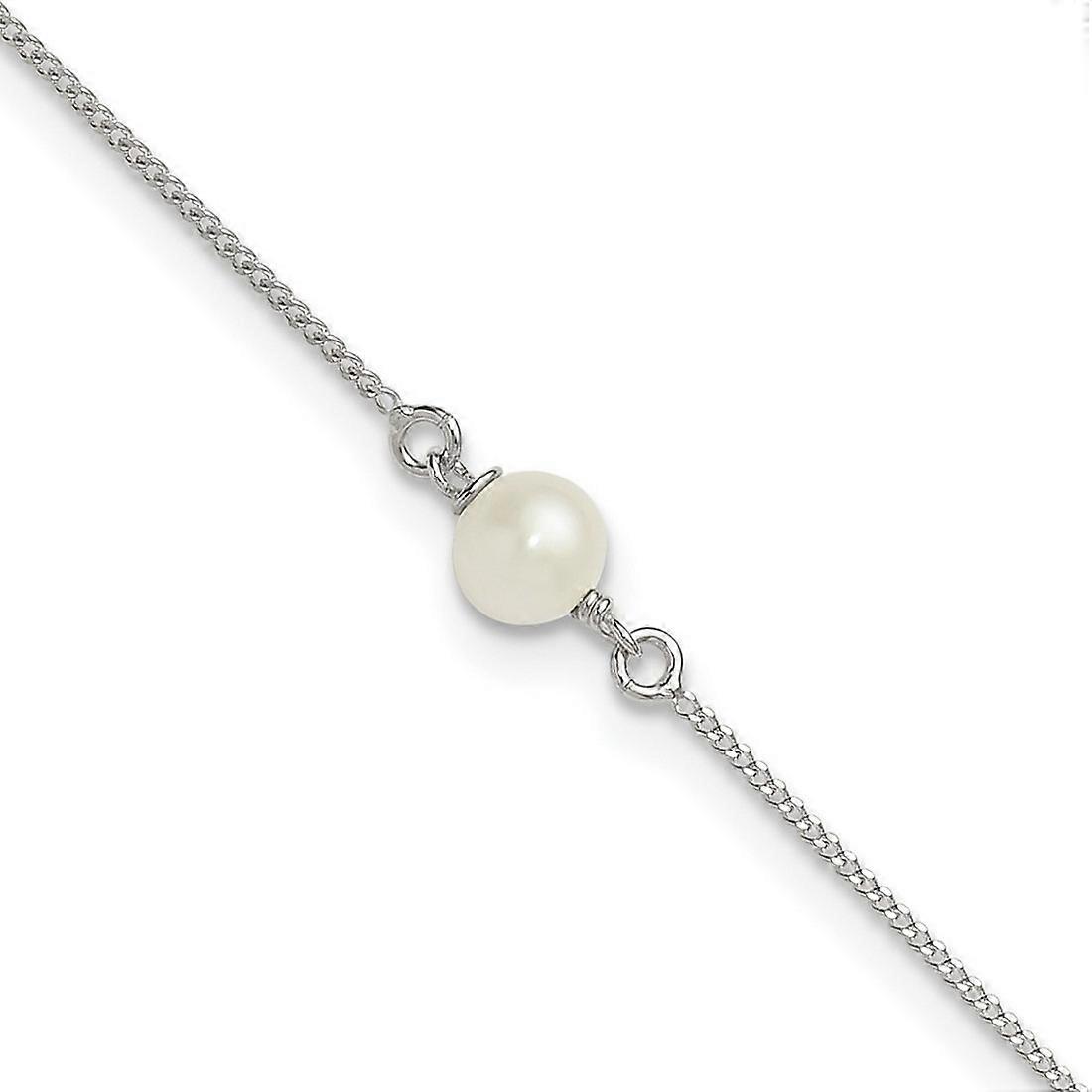 0.6mm 925 Sterling Silver Polished Freshwater Cultured Pearl Plus 1in Extension Anklet 9 Inch-Anklet for Women