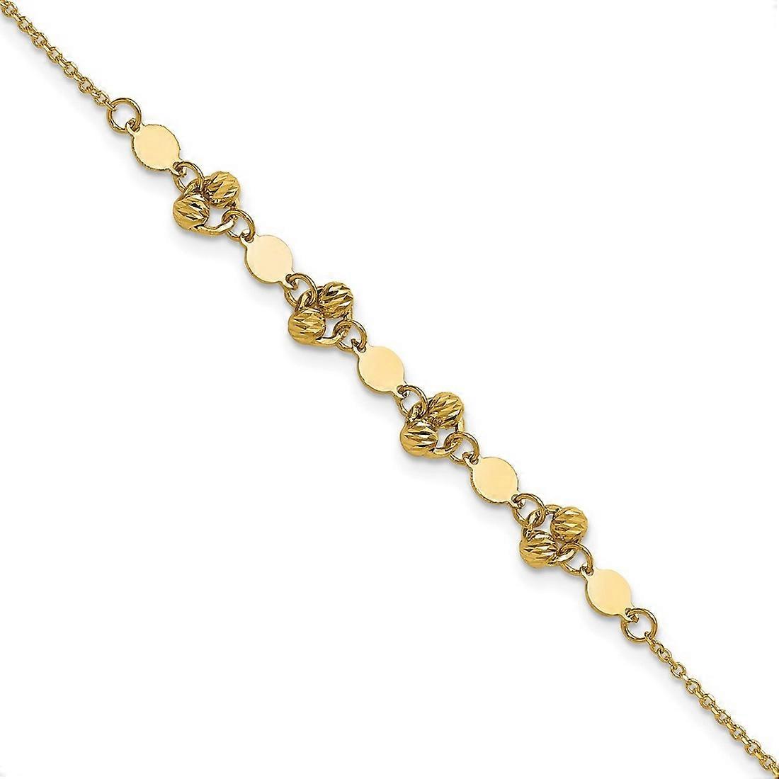 0.75mm 14k Polished Sparkle-Cut Beaded Fancy Circles With .5 Inch Extension Bracelet - 7 Inch - 2.6 Grams In 14k Yellow Gold - - Charm/Element Width: 6 mm - Charm/Element Thickness: 2.9 mm - Width of Item: 0.75 mm - Charm/Element Length: 5.5 mm - Length of Item: 7.5 in - Chain Length: 7 in - Chain Width: 0.7 mm - Clasp /Connector: Lobster (Fancy) - Finish: Polished - Chain Type: Cable - Feature: Semi-Solid - Extender Length: 0.5 in -