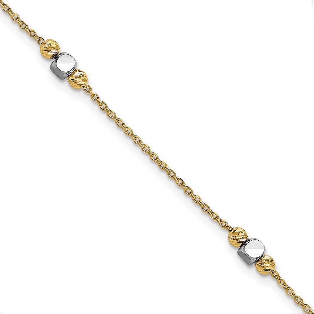 0.85mm 14k Two-tone Polished Sparkle-Cut Beads With 1 Inch Extension Bracelet - 7 Inch - 2.0 Grams In 14k Yellow Gold - - Charm/Element Width: 3.2 mm - Width of Item: 0.85 mm - Length of Item: 7 in - Chain Length: 7 in - Chain Width: 3.15 mm - Clasp /Connector: Lobster (Fancy) - Finish: Polished - Chain Type: Cable - Feature: Flexible - Extender Length: 1 in -