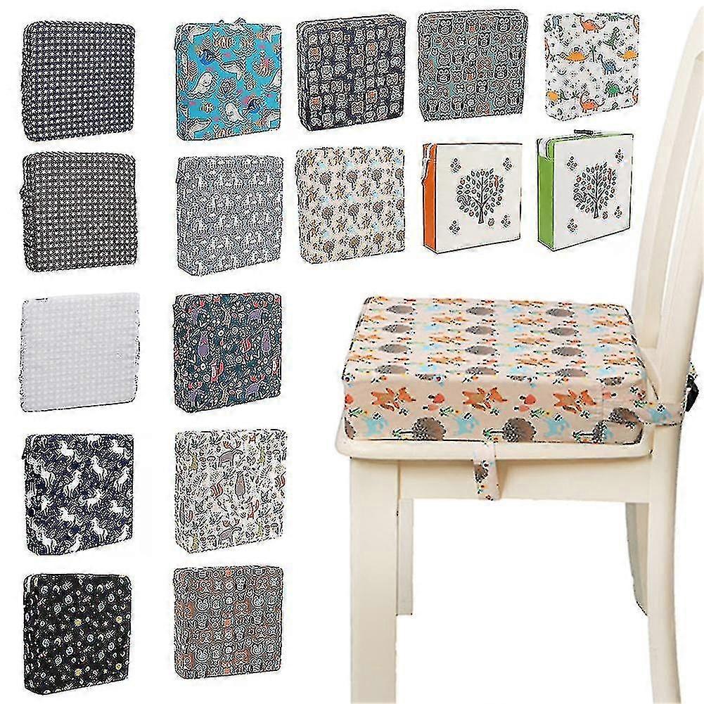 *In life, the babies sit on the dining chair to eat, because they are not tall enough, it is very inconvenient. Even if they buy a baby special dining chair, once the child grows up, they cant use it. At this time, our booster pad can help. To your baby, you can adjust the tightness or remove the sponge for cleaning, which is very convenient.*Product: Practical Removable Kids Chair Lifting Cushion Non-slip Highchair Wear-Resisting Print Dining Increased Seat Chair Booster*Feature:*Removable and washable.*Baby chair lifting pad.*Thickened and wear-resisting material.*A variety of pattern prints, comfortable.*Specification:*Size: 30*30*8cm approx*Color / Pattern: Blue, Coffee, Silver, Color Horse, Starry Sky, Ocean, Pony, Forest Green, Forest White, Orange, Owl Blue, Owl Green, Dinosaur, Fox, Wisdom Tree Orange, Wisdom Tree Green ect.*Material: polyester fibre jacquard cloth + high-density sponge (prevent collapse)*Washing: hand washing*Usage: There are 4 webbing straps to fix the height-increasing pad on the baby dining chair by knotting.*Package: 1 x Child Dining Chair Booster Mat