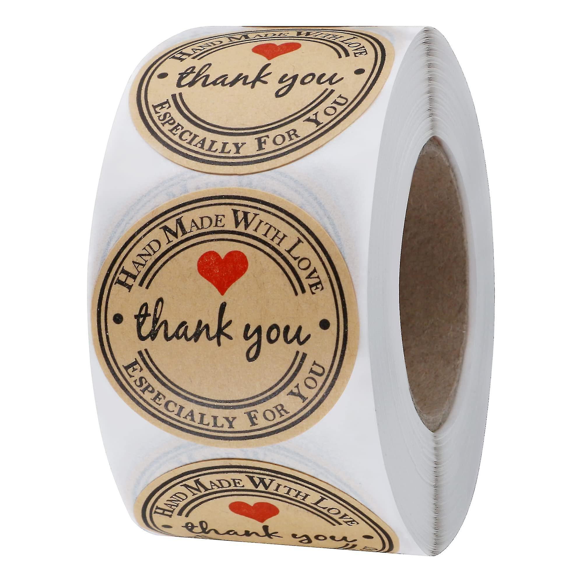 1inch Round Kraft Thank You Hand Made With Love Stickers 500 Handmade Labels Per Roll