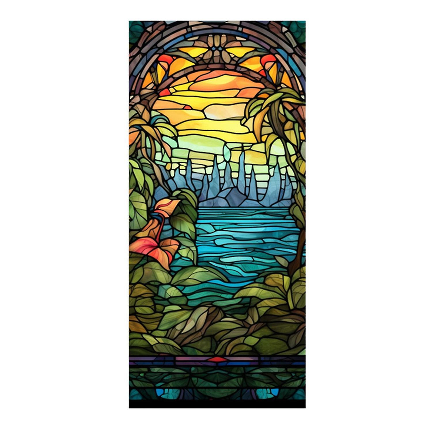 The window film can add elegance to any room with its colorful pattern.