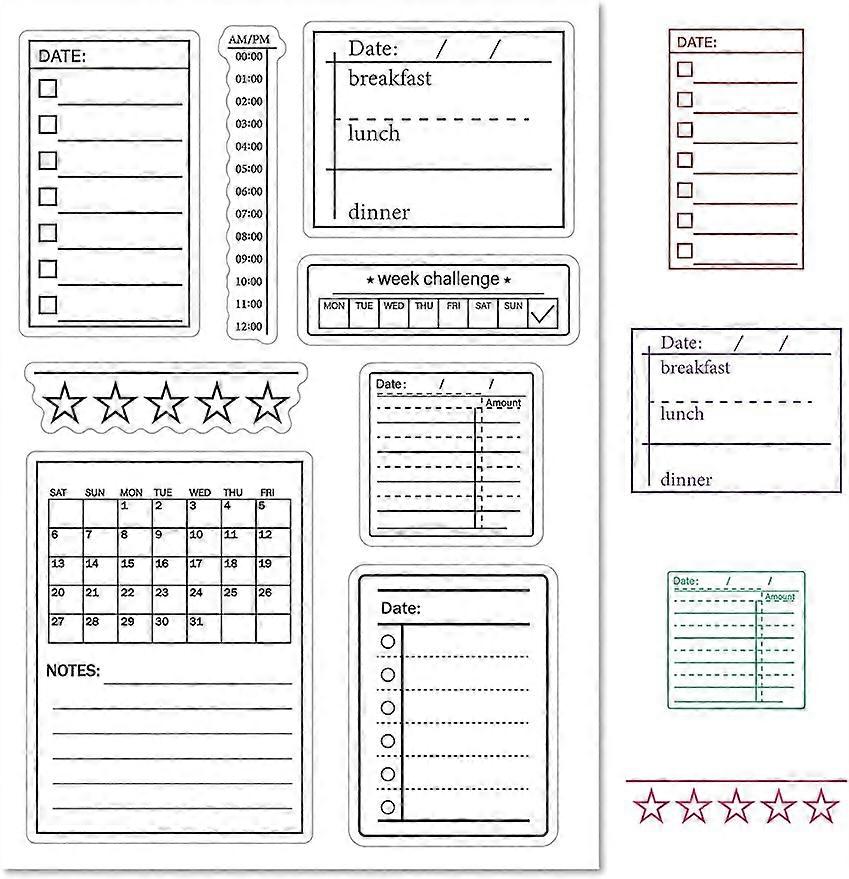 1Sheet Calendar Planner Label Stencils Clear Rubber Stamp Vintage Frame Transparent Silicone Seals Stamp