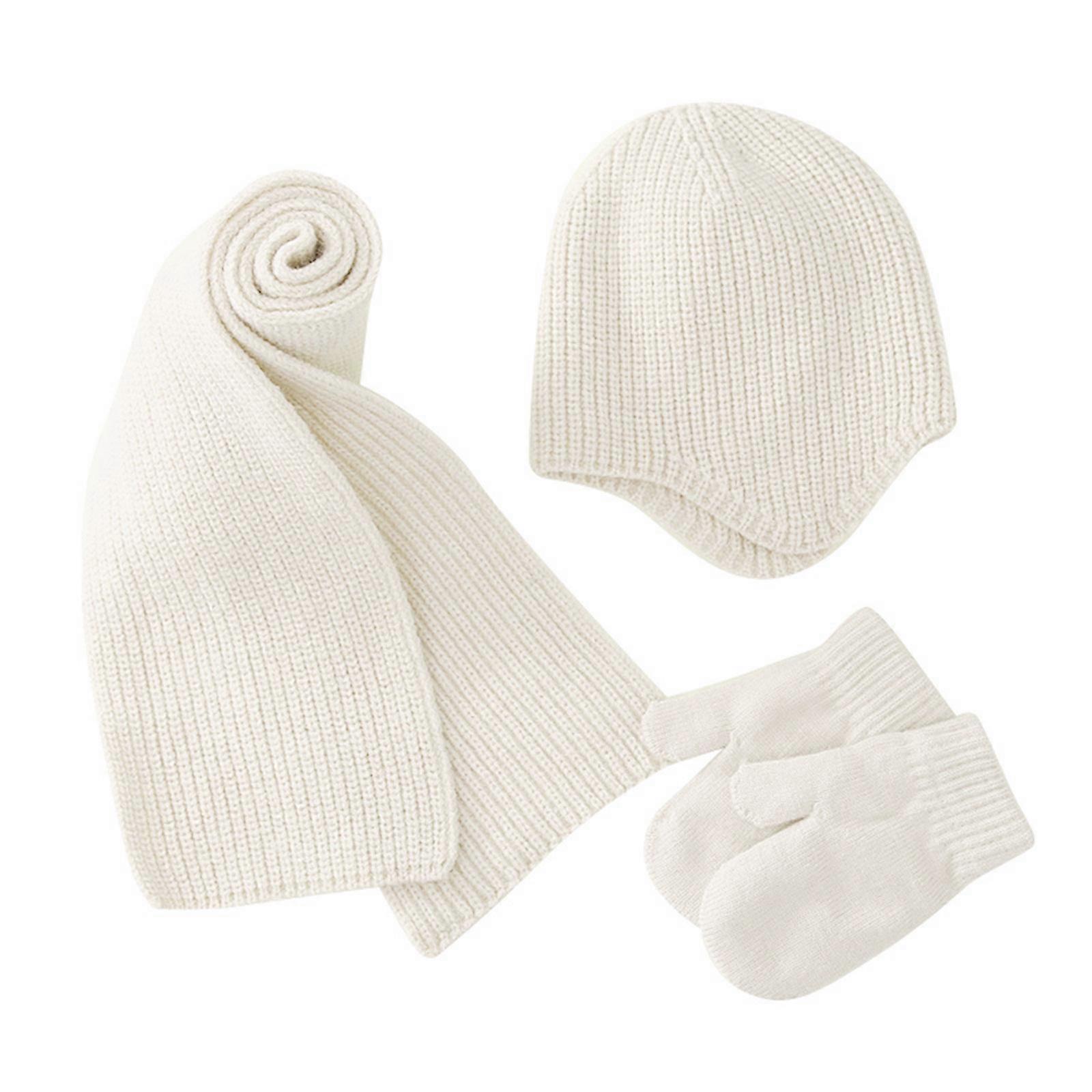 1 Set Cute Baby Beanie Hat & Mittens Knitted Boys Girls Bonnet Cap with Warm Scarf Neck Warmer Winter Outdoor Essential White