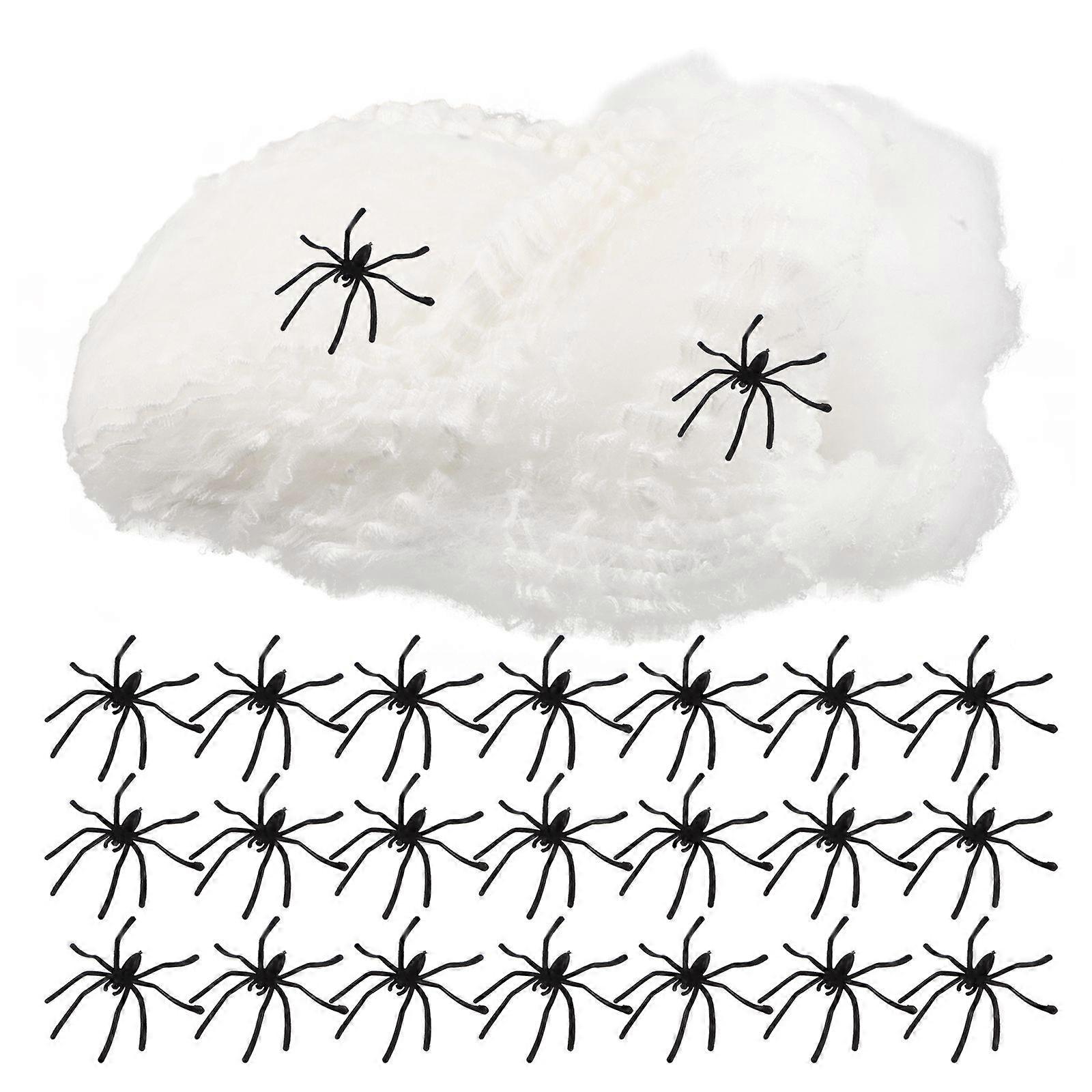 1 Set Spider Web Decoration: Glow-In-The-Dark Stretchy Cobweb With Realistic Plastic Spiders For Halloween Party Decorations - Spooky Haunted House Pr