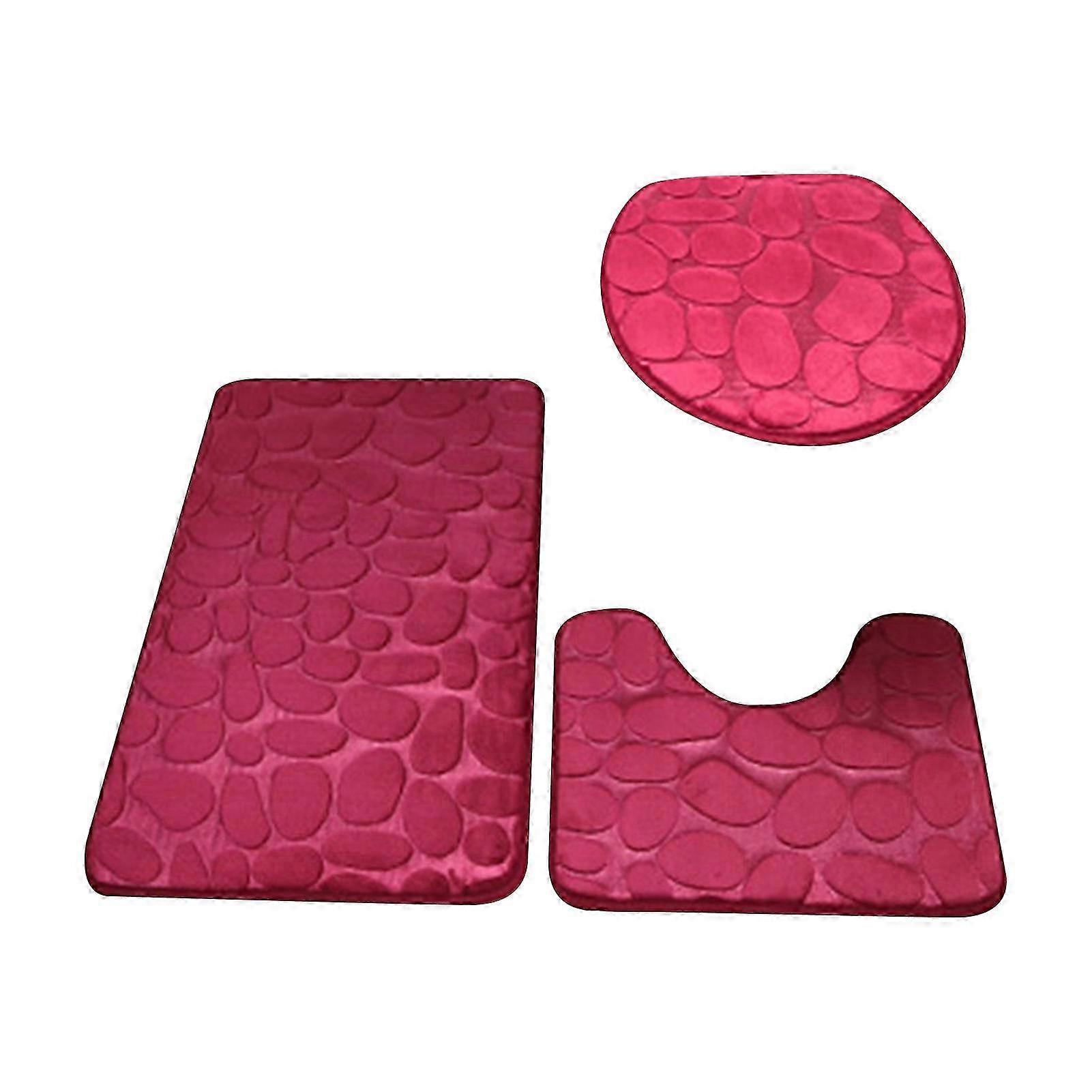 1 Set Cobblestone Toilet Lid Cover Soft Polyester Anti-skid Bath Mat - Wine Red