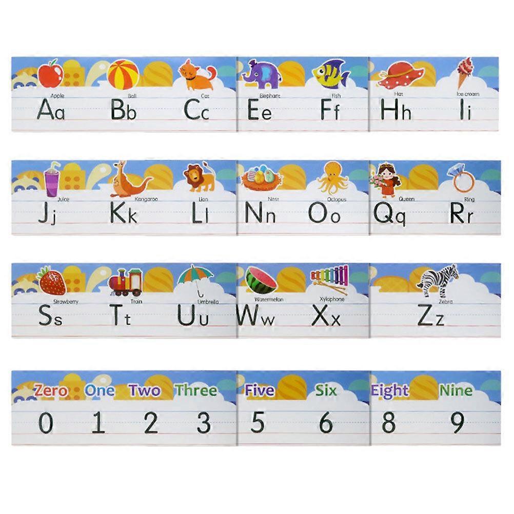 Description The Alphabet and Number Bulletin Board is a versatile and multi-functional design that features both 0-9 numbers and all 26 letters of the English alphabet. This bulletin board is perfect for classrooms, offices, or homes where learning and organization are key. With its clear and easy-to-read font, this bulletin board is ideal for teaching young children how to count and read letters. Features -Color:As Shown -Material:Paper -Size:41.00X13.80X1.00cm/16.11X5.42X0.39in -The 0-9 Numbers and 26 English Alphabet and Number Bulletin Board is made with good materials to ensure durability. -The Alphabet and Number Bulletin Board is a product that offers easy installation through the use of double-sided adhesive design. -This bulletin board features a comprehensive collection of 0-9 numbers and 26 English alphabet letters, practical for teaching kids. -Whether used in classrooms, offices, or homes, this bulletin board offers a versatile and practical way to showcase numbers and letters. -With its clear and colorful design, it is easy to read and understand, making it ideal for both children and adults. Packing list12 x Bulletin Boards