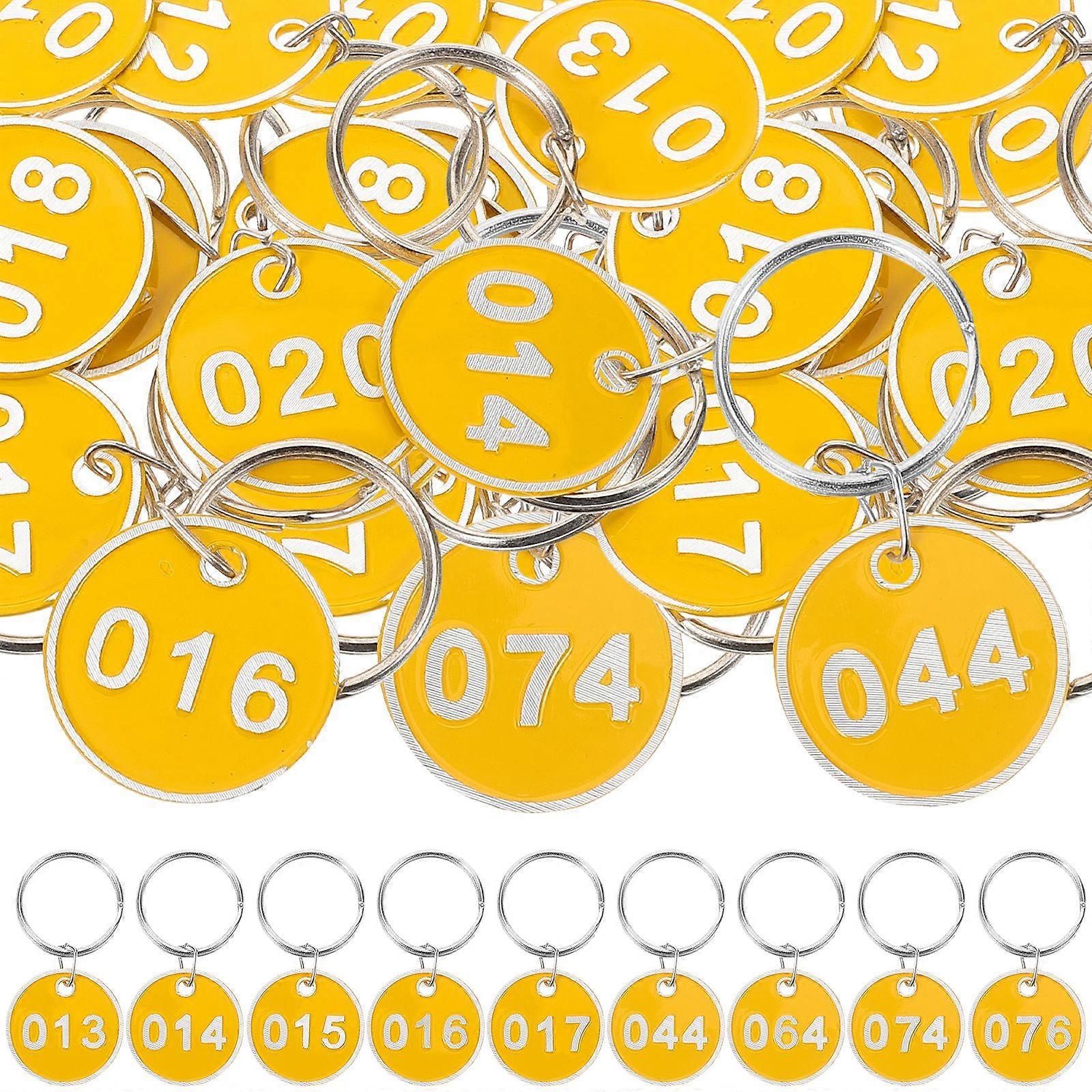 1 Set Aluminium Storage Tags Metal Numbers Plates Luggage ID Tags Key Ring Labels (Yellow, Number 1-100, 1Pc/Each Number)