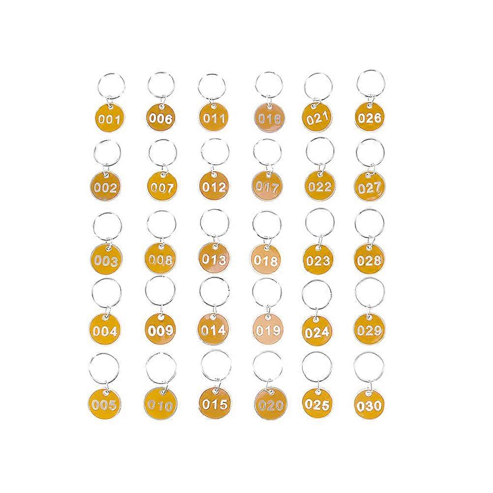 1 Set Aluminium Storage Tags Metal Numbers Plates Luggage ID Tags Key Ring Labels (Yellow, Number 1-30, 1Pc/Each Number)