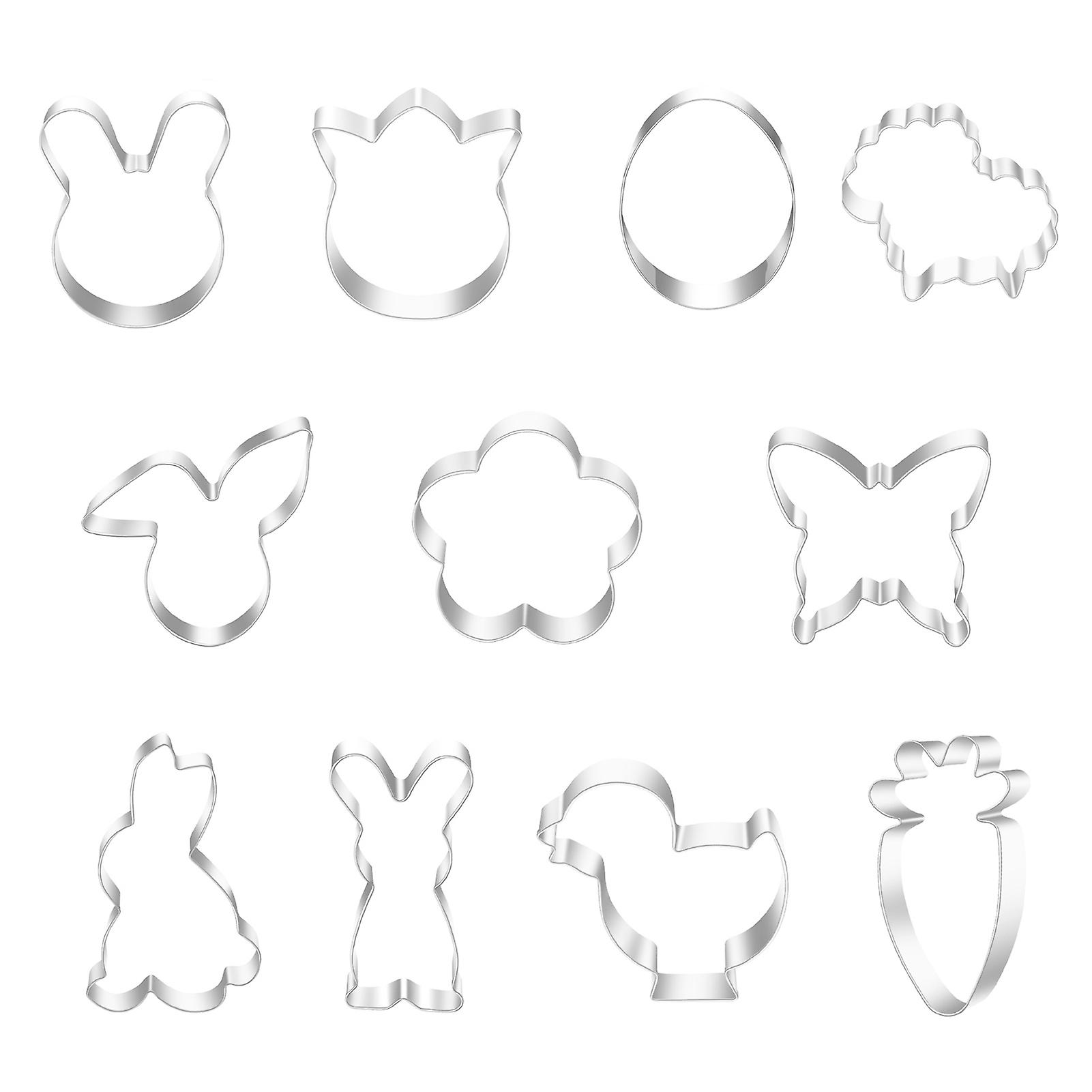 Description:It is this baking mold stencil features that has a flat, smooth surface that allows you to clean it with a simple rinse and allows you to quickly create cookies with smooth edges.This baking mold stencil has cute bunny shapes that allow you to make Easter themed cookies to serve in your Easter party and let your guests enjoy your Easter party.It is made by stainless steel, resistant to corrosion and more durable.Each set has 11 cutters in 11 different styles.It can be used to make soap, bread, pizza, sugar cake, mousse cake, cake, chocolate, fruit pie, etc. It is used in biscuit making, widely used in ceramics, clay, soft pottery and so onItem Name: Cookie CuttersMaterial: 430 Stainless SteelFeatures: Rabbit Shape, DIY, Non-stickSize Details: 6cm x 6.8cm/2.36" x 2.68" (Approx.)6.4cm x 6.5cm/2.52" x 2.56" (Approx.)5.8cm x 5.5cm/2.28" x 2.17" (Approx.)8cm x 5.4cm/3.15" x 2.13" (Approx.)7.5cm x 4cm/2.95" x 1.57" (Approx.)6.5cm x 6.6cm/2.56" x 2.6" (Approx.)8.8cm x 4.7cm/3.46" x 1.85" (Approx.)7.7cm x 5.5cm/3.03" x 2.17" (Approx.)6.3cm x 5.7cm/2.48" x 2.24" (Approx.)6.1cm x 4.76cm/2.4" x 1.87" (Approx.)7cm x 7cm/2.76" x 2.76" (Approx.)Notes:Due to the light and screen setting difference, the item's color may be slightly different from the pictures.Please allow slight dimension difference due to different manual measurement. Instructions:First put the dough on the fondant silicone pad and flatten it with a rolling pin, then you can use it to cut out the outline shape.Notice:Children must use the mold under the guidance of an adult. The edge of it is sharp and cannot be used as a toy. Please keep it away from children when not in use.Package Includes:1 Set of Cookie Cutters(11Pcs Included)