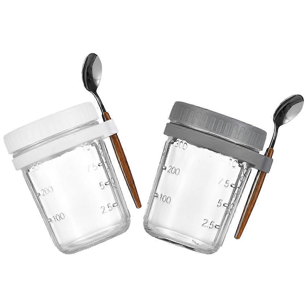 1 Set Oatmeal Cup Small Milk Container with Lid Sealed Storage Glass Cup and Spoons