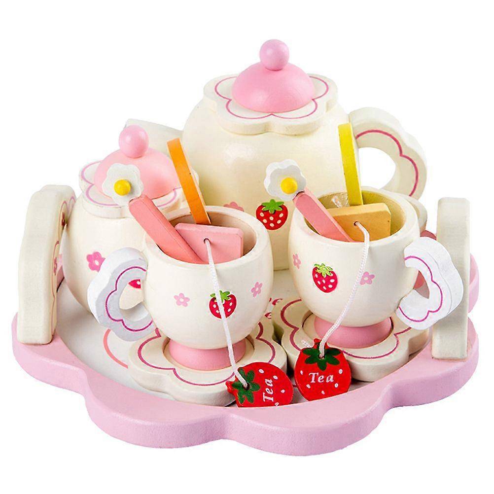 1 Set Kids Tea Ware Toys Wooden Tea Ware Toys Simulation Pink Tea Ware Toys Wooden Children Toys (Accessories for Random Color)
