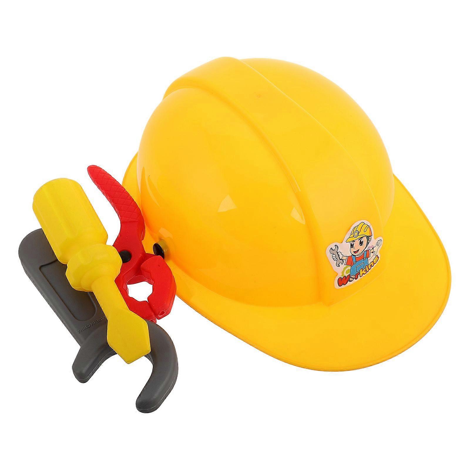 1 Set Kids Plastic Engineer Tool with Realistic Hard Hat Pliers Screwdriver Wrench Pretend Play Construction Toys Educational Stage Performance Props