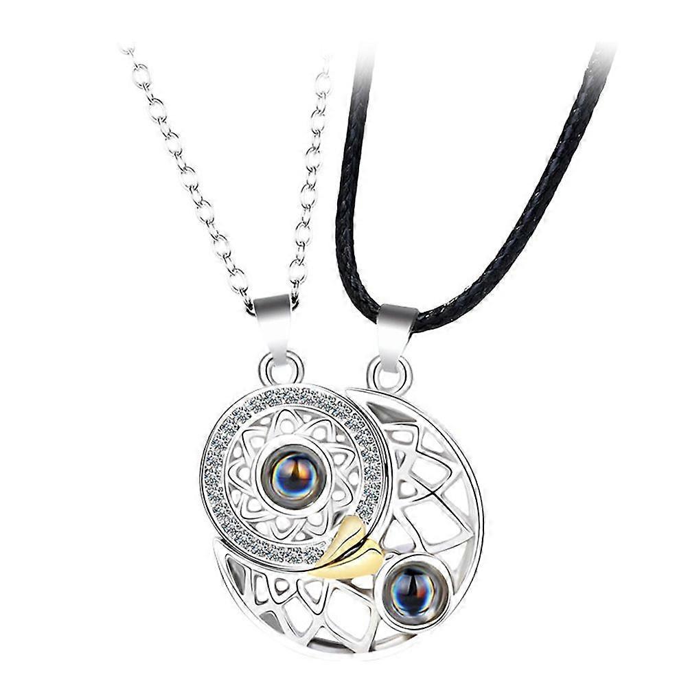 1 Set Creative Sun Moon Necklace Couple Stitching Pendant Projection Necklace