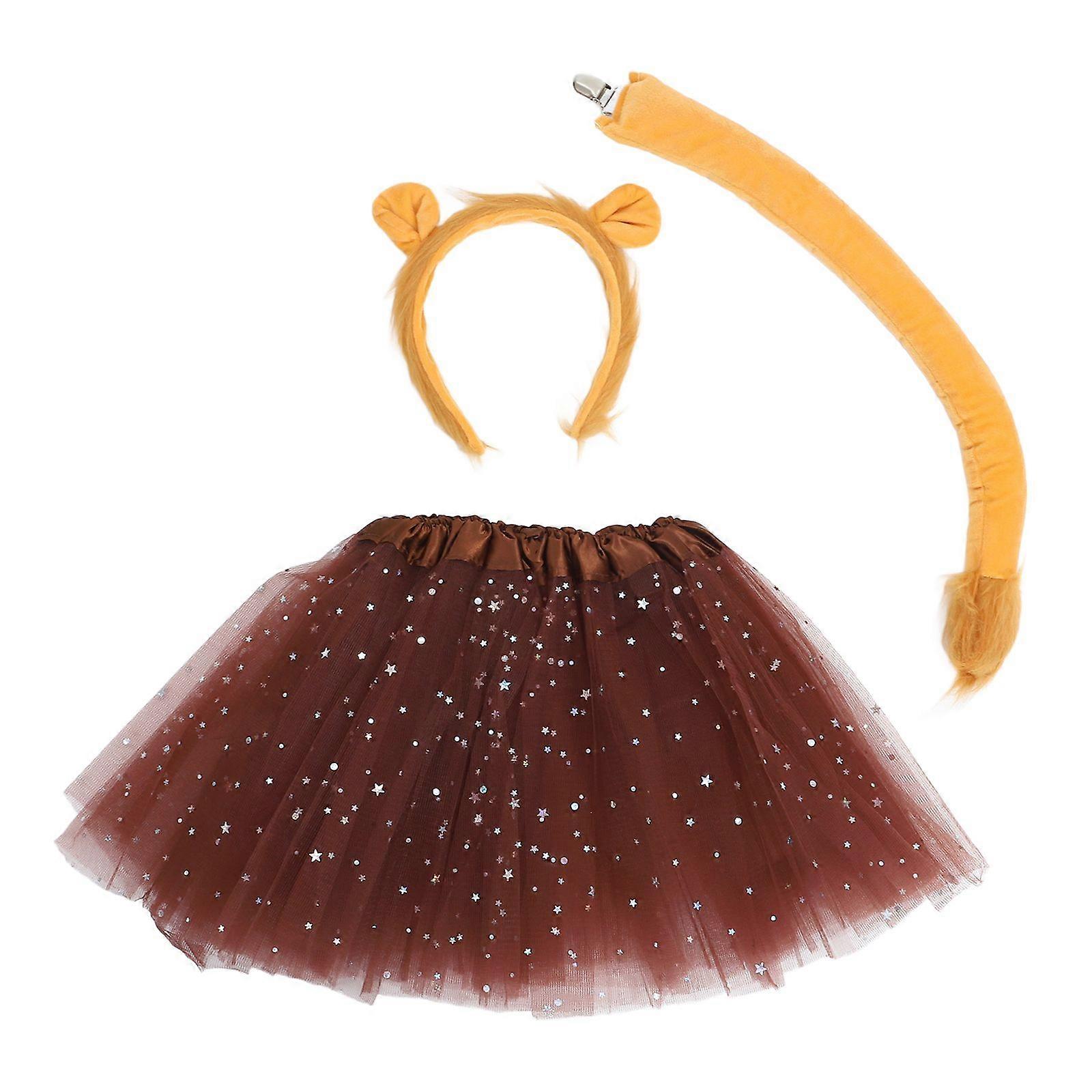 1 Set Cosplay Lion Costume Animal Ear Headband Tail Prop Skirt for Performance