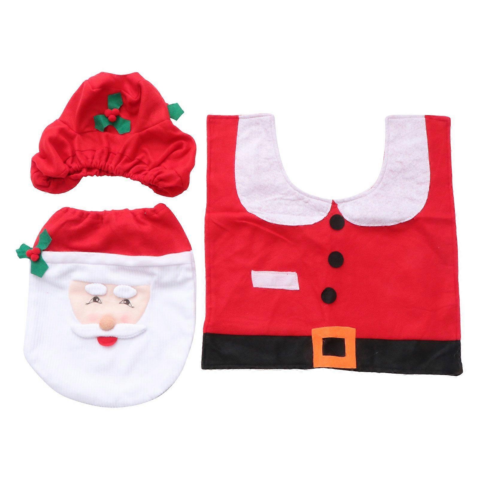 1 Set Santa Claus Toilet Cover Foot Cushion Water Tank Cover Napkin Cover (Red)