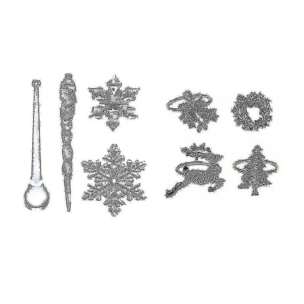 colorMaterial:alloysize:Christmas tree: 5 x 3.3cm, garland: 4.3 x 4.3cm, deer: 5 x 5.2cm, : 4 x 2.5cmPackage Contents:10 x 4.7 inch transparent icicles10 x 4 inch icicles10 x 1.8 inch crystal snowflakes10 x 2.2 inch crystal snowflakes1 roll x crystal thread4 x Napkin ringsOnly the above package content, other products are not included.Note: