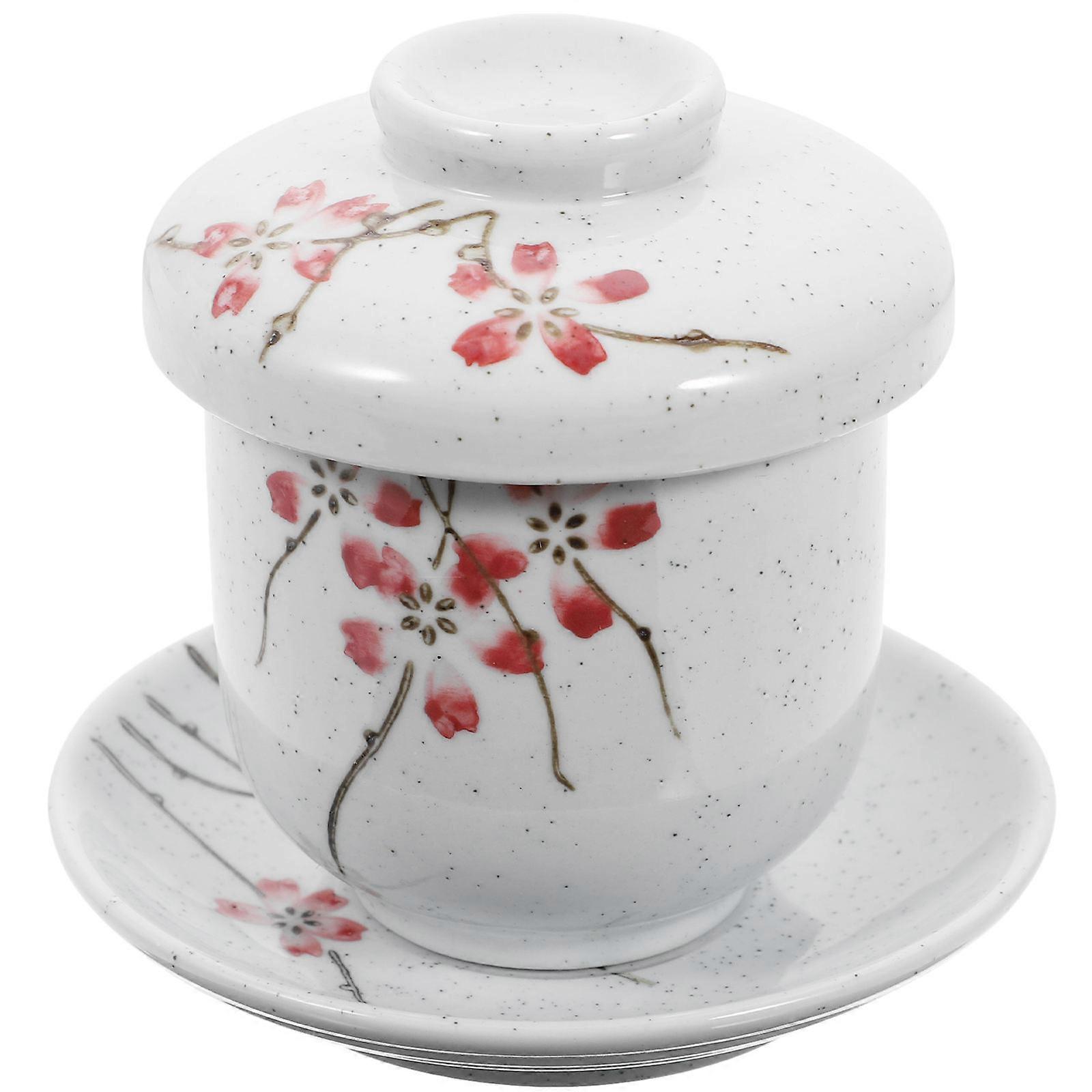 1 Set Ceramic Cup Japanese Stew Cup Small Soup Cup Ice Cream Bowl Stewing Cup with Dish