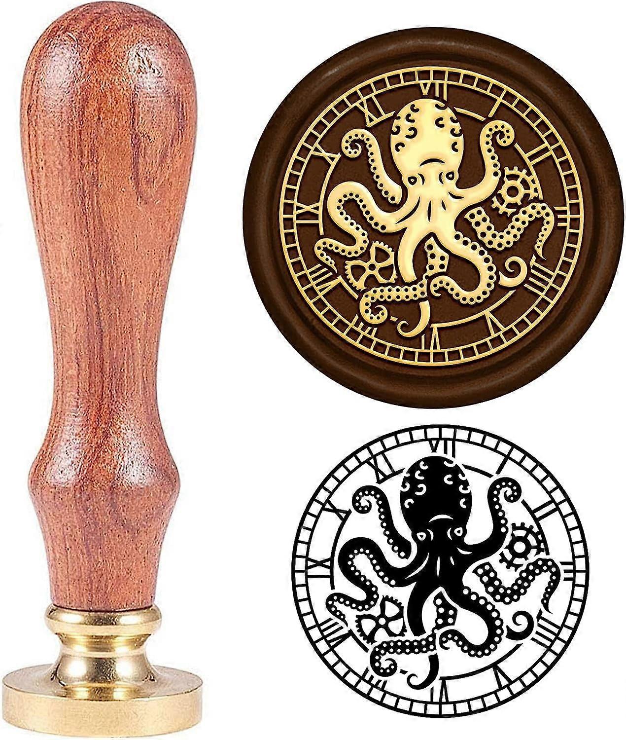 1Set Octopus Wax Seal Stamp 1.18in Roman Numeral Clock Vintage Letter Sealing Stamp Brass Head Wooden Handle Stamps