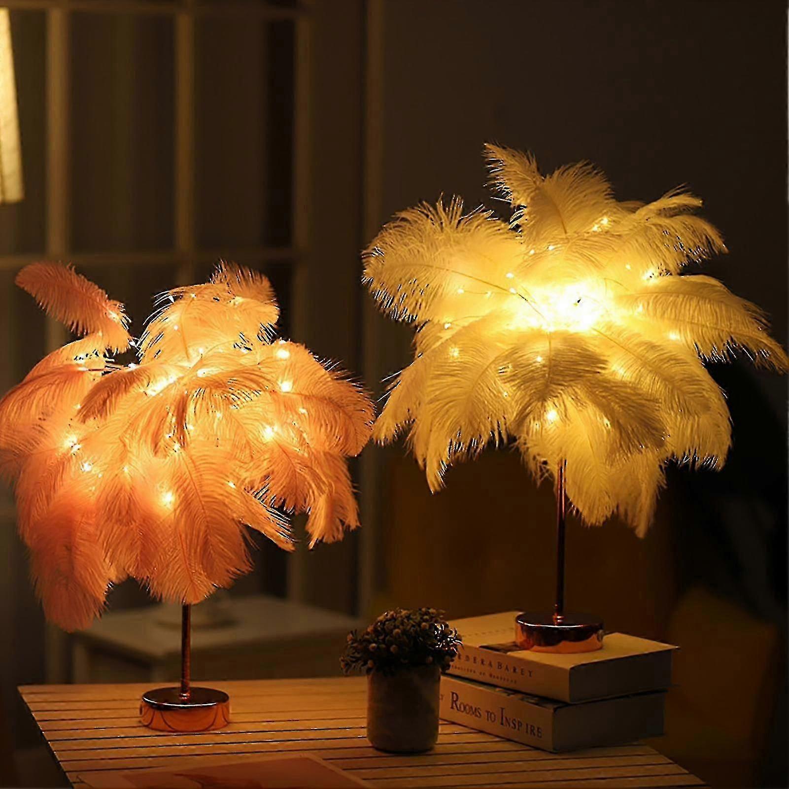 1 Set Table Lamp High Brightness Feather Shape Flexible Copper Wire Decorative Night Light For Home