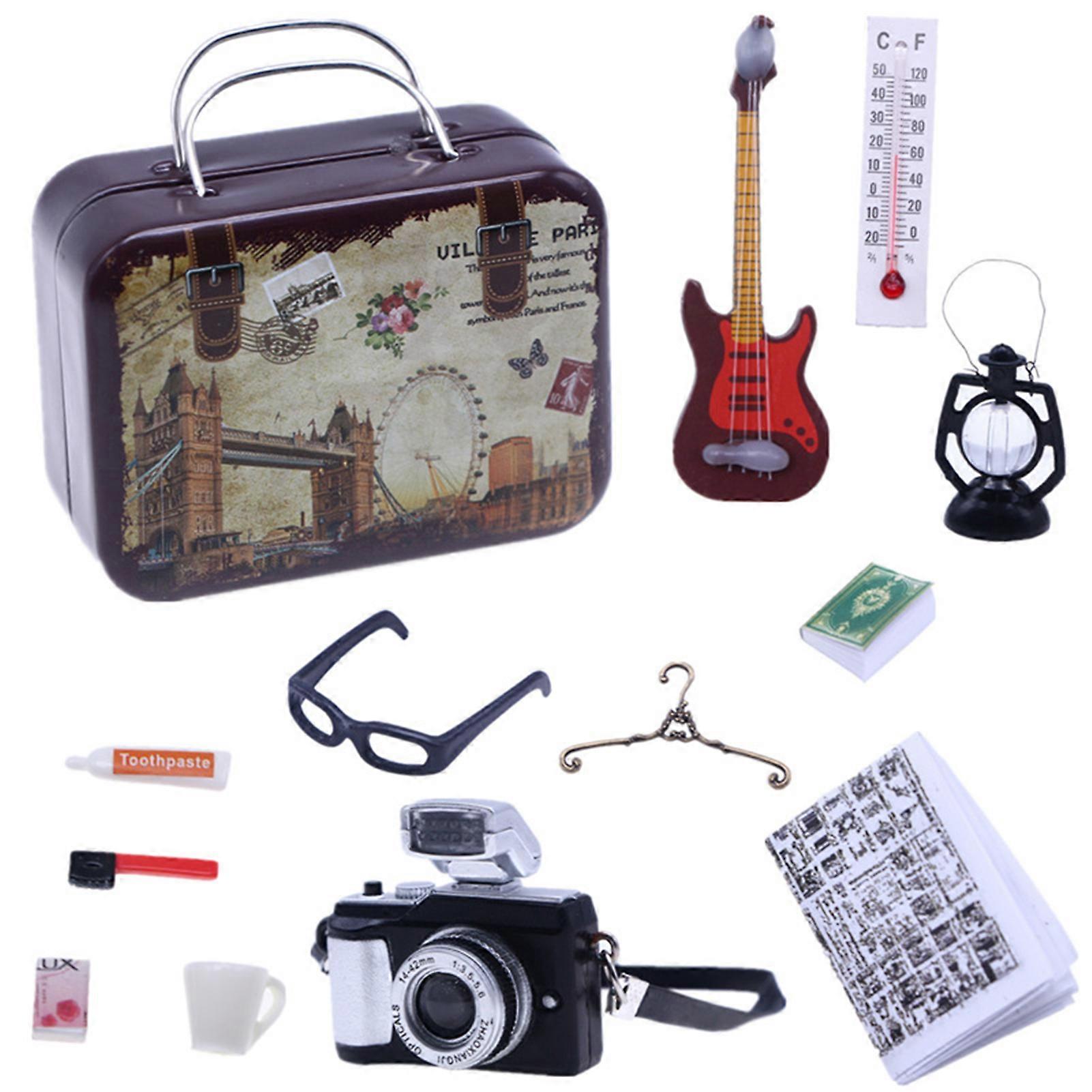 1 Set Dollhouse Miniature Accessories Mini Camera Guitar Cup Toothpaste Book Glasses Model Dollhouse Vintage Case Travel Set Miniature Dollhouse DIY D