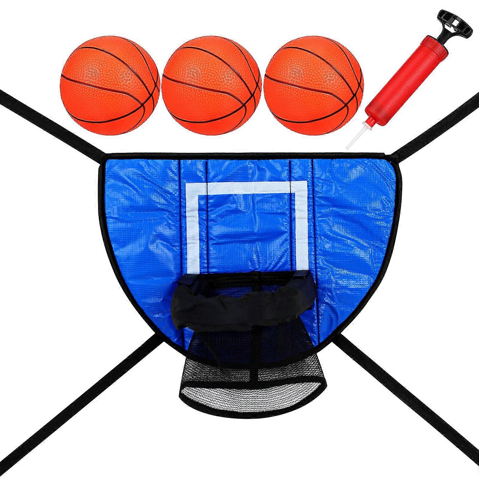 Description The trampoline basketball hoop attachment is designed to bring the excitement of basketball to your trampoline. This complete accessory allows kids to practice their basketball skills while bouncing. The sturdy frame makes sure durability, and the easy installation process means you can start playing in a minutes. Features -Color:Assorted color -Material:PVC -Size:49.80X36.50X0.40cm/19.57X14.34X0.16in -Complete set: This trampoline basketball hoop set includes a basketball hoop, basketballs, and an inflator, providing ample accessories -Wide compatibility: trampoline hoop attachment is designed to fit various trampoline styles, ensuring a proper match for your existing setup. -Easy installation: no additional tools required, trampoline basketball hoop parts is convenient and quick to set up for immediate use -Space saving design: trampoline game attachment has a compact structure for efficient use of space, keeping your play area organized -Strong material: made from PVC materials, this trampoline basketball hoop is built to last through countless games and plays Package list: 1 x basketball hoop 1 x pump 3 x balls