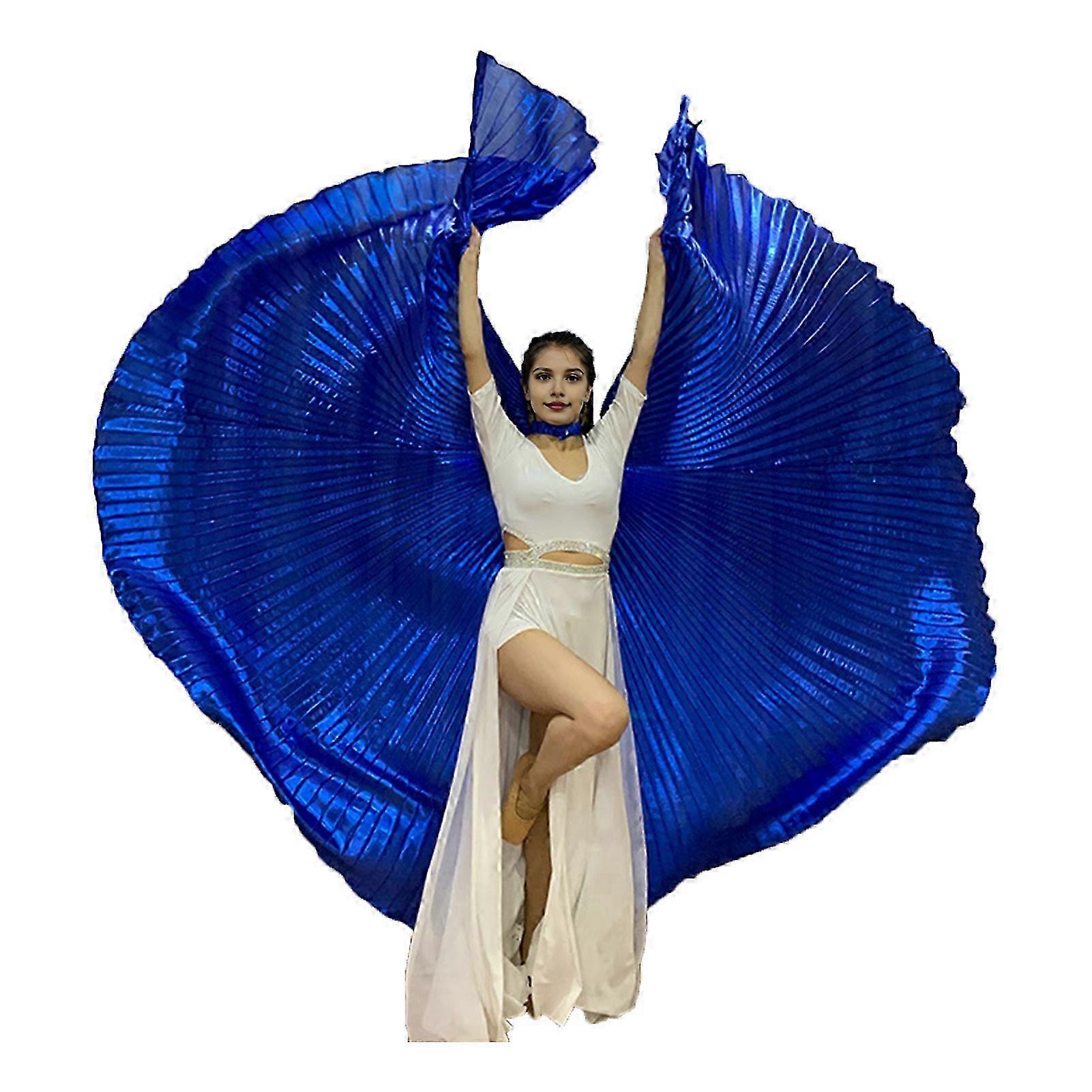 1 Set Performance Cape with Telescopic Rod 360 Degree Belly Dance Wings Egyptian Costume Pleated Bright Color Luster Surface Halloween Performance Pro