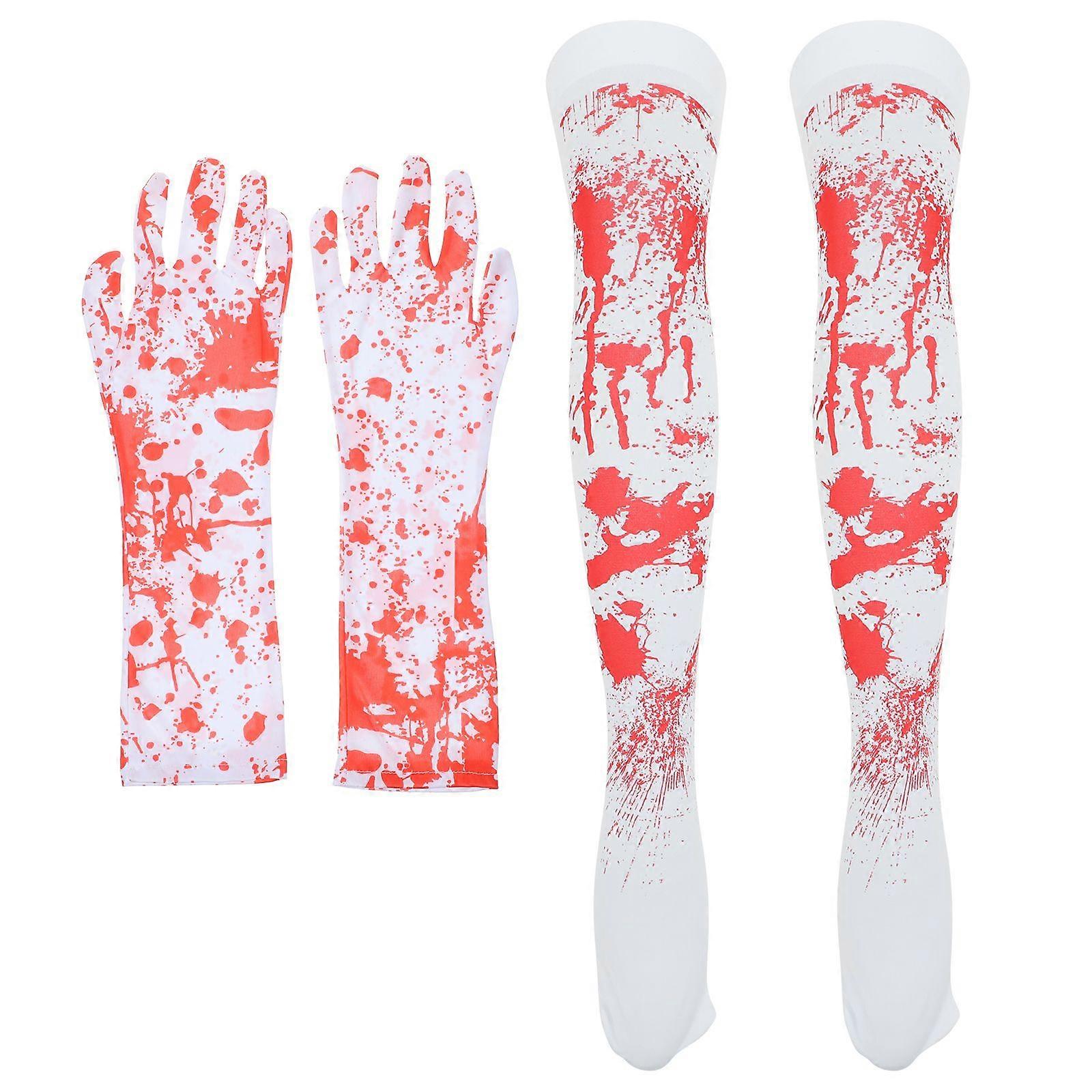 1 Set Halloween Gloves Socks Cosplay Blood Costume Stained Blood Stockings Gloves