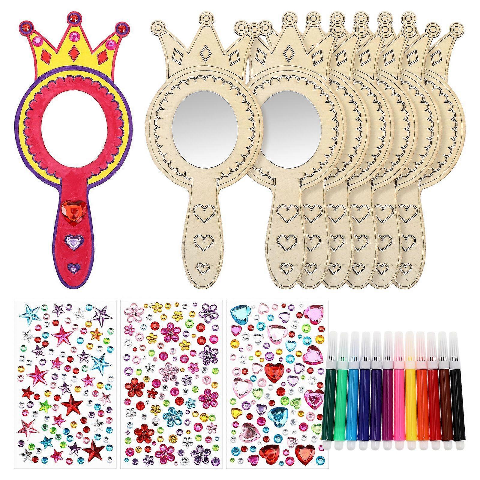1 Set Handheld Mirrors Kids Craft Mirrors Crown Shaped Hand Mirrors Unfinished Wood Mirrors For Painting With Pens Rhinestones