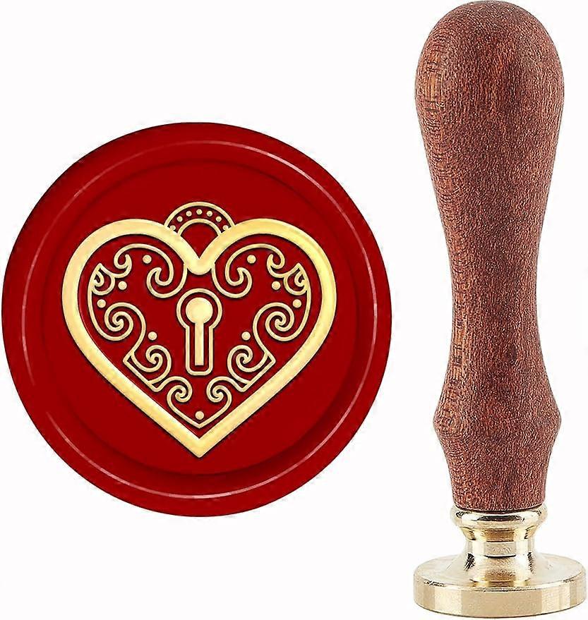 1Set Heart Brass Sealing Wax Seal Stamp Wood Handle