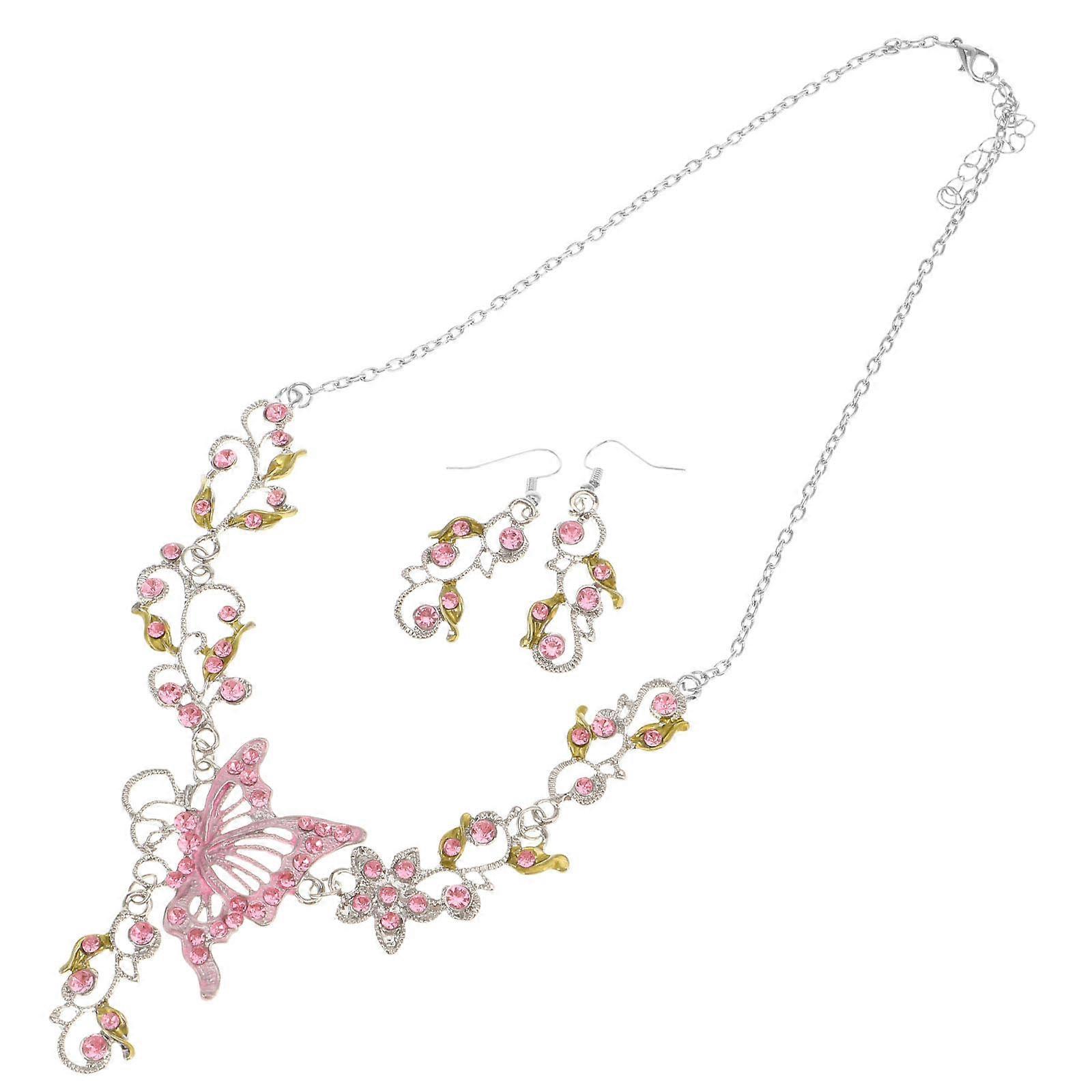 1 Set Fashion Rhinestones Earring Necklace Butterflies Necklace Flower Earring