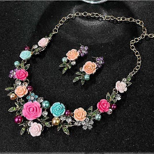 1 Set Flower Necklace Earrings Set Women'S Wedding Jewelry Floral Bridesmaid Choker Summer Jewelry For Prom Costume Party Accessories