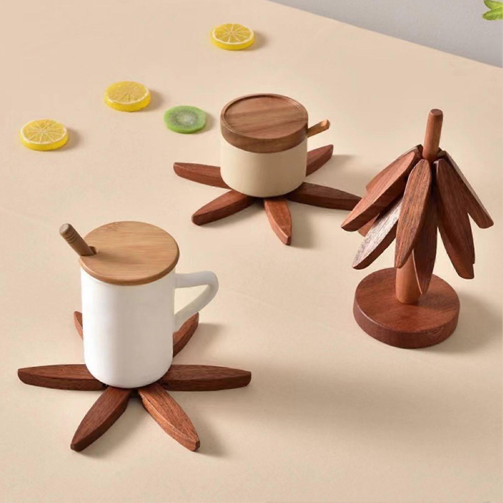 1 Set Christmas Tree Coaster with Base 3 Layers Tree Shape Wooden Trivet Anti-scald Heat Resistant Countertop Pot Pan Coffee Tea Cup Holder