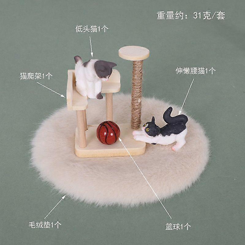 1 Set Miniature Cat Tree Furniture: Realistic Climbing Frame with Cute Cat Figurine - 1/12 Scale Dollhouse Accessories - Miniature Scene Decoration -