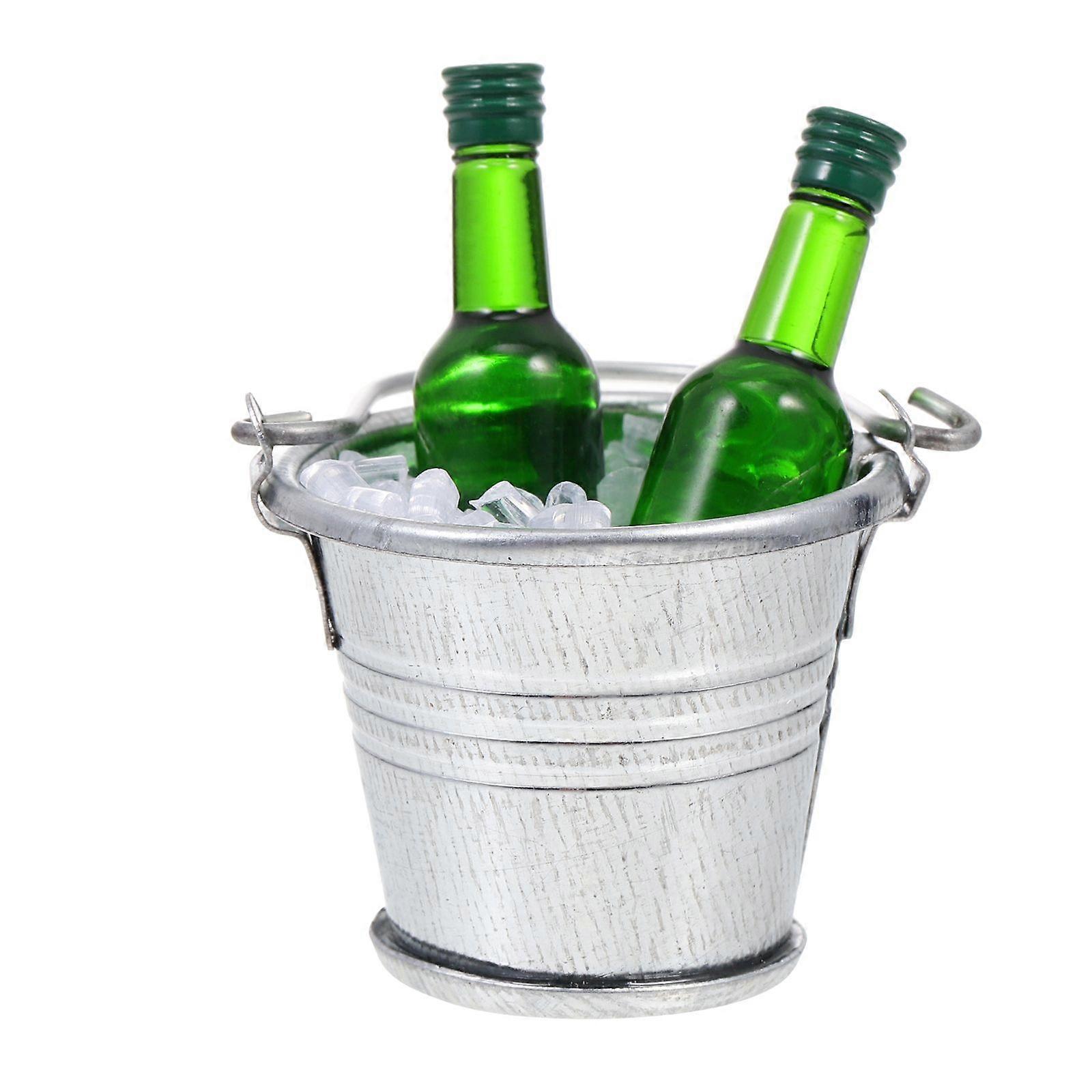 1 Set Miniature Beer Bucket Set with Small Beer Bottles and Ice for Dollhouse Bar Decor Bucket Bottles Ice for Layout Scene Adornments Assorted Color