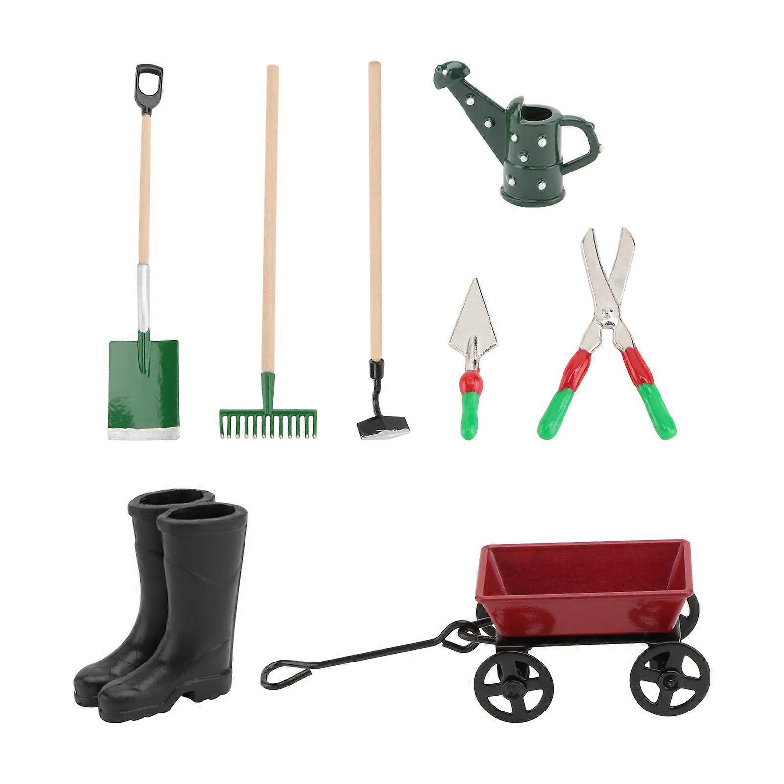 1 Set Miniature Farm Tools Mini Cart Mini Watering Pot Mini House Accessories