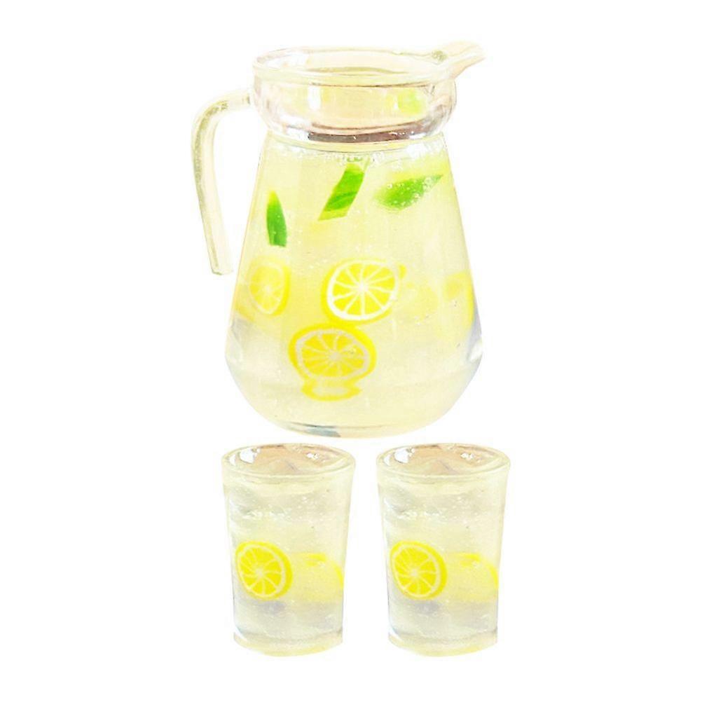1 Set Mini Dollhouse Lemonade Pitcher Tiny Resin Drink Cup Glass Bottles Simulated Beverage Jug for Dollhouse Decorations Kids Play
