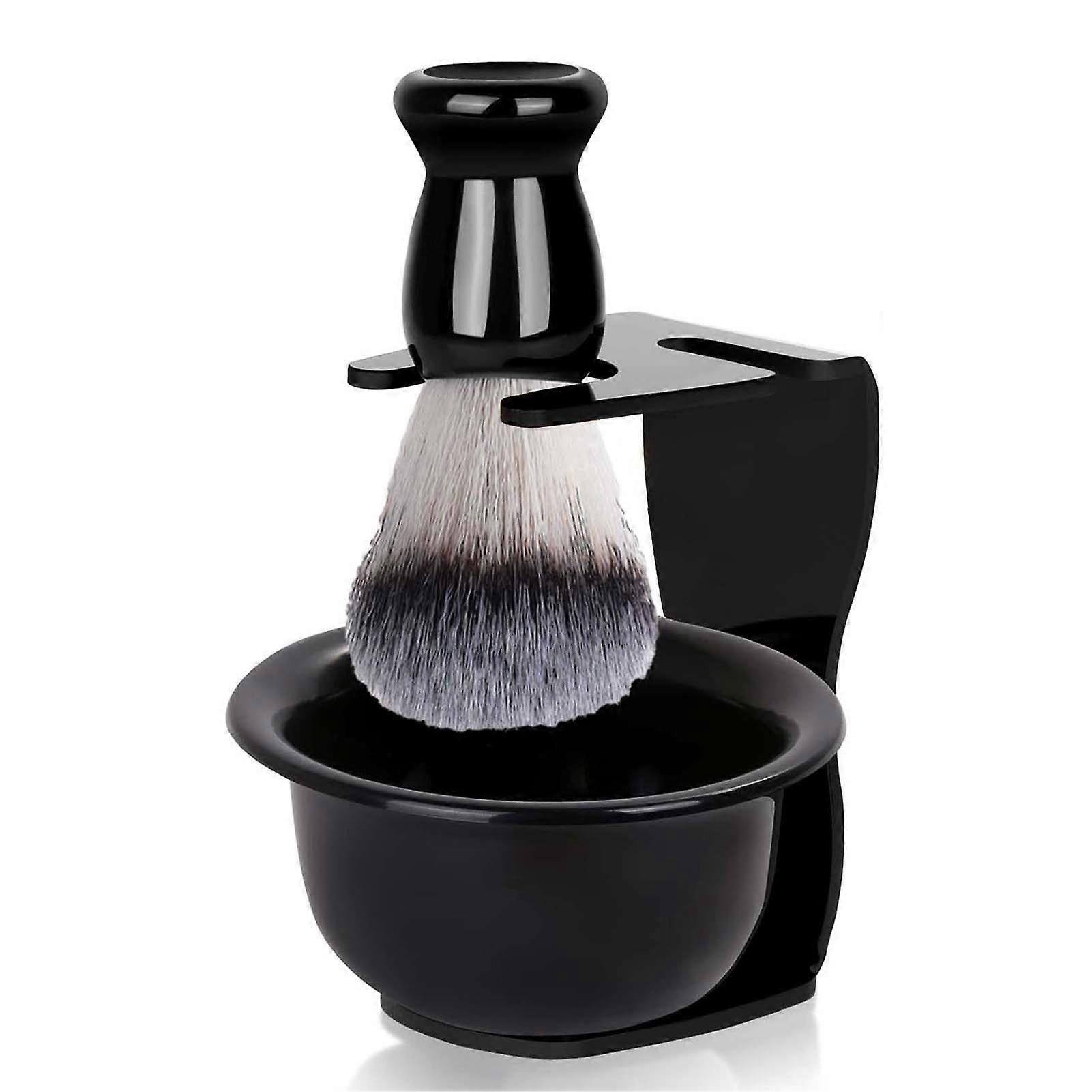 Neat Organization: The shaving holder neatly arranges your brush and bowl, ensuring easy access by the sink or convenient storage in a cabinet. Durable ABS Construction: The shaving soap bowl, crafted from ABS material, offers ample lathering space without black coating or paint peeling issues for long-lasting use. Premium Shaving Brush: Enjoy a luxurious wet shaving experience with the high-quality nylon brush that is soft, odor-free, and gentle on the skin, creating rich lather effortlessly. Elegant Design: The sleek black finish of this shaving set adds a touch of sophistication to your grooming routine, blending seamlessly with various bathroom decor styles. Perfect Gift Idea: Ideal for dads, husbands, or friends who appreciate traditional wet shaves, this kit makes a thoughtful present for occasions like Father's Day, birthdays, and holidays. Description: This premium shaving kit includes a shaving holder that neatly organizes your shaving brush and bowl for easy access. The ABS shaving soap bowl provides ample lathering space, ensuring a dense and delicate lather without black coating or paint peeling issues. The high-quality nylon shaving brush is soft, odor-free, and gentle on the skin, creating rich lather quickly for a luxurious wet shaving experience. The elegant black finish adds a professional touch to any bathroom decor. A perfect gift for dads, husbands, or friends who appreciate traditional wet shaving. Ideal for Father's Day, birthdays, Valentine's Day, Christmas, and more. Item Name: Shaving Kit Material: ABS Plastic Features: Portable Size, Husband Father Gift, Modern Look Size Details: Stand: 7.62cm x 11.11cm/3" x 4.37" (Approx.) Brush: 10.16cm/4" (Approx.) Razor: 4cm x 10.3cm/1.57" x 4.06" (Approx.) Bowl: 8.68cm x 3.95cm/3.42" x 1.56" (Approx.) Blade: 4.8cm x 2.6cm/1.89" x 1.02" (Approx.) Notes: Due to the light and screen setting difference, the item's color may be slightly different from the pictures. Please allow slight dimension difference due to different manual measurement. Package Includes: A: 1 x Shaving Stand 1 x Shaving Brush 1 x Frothing Bowl or B: 1 x Shaving Stand 1 x Shaving Brush 1 x Frothing Bowl 1 x Shaver 5 x Blades