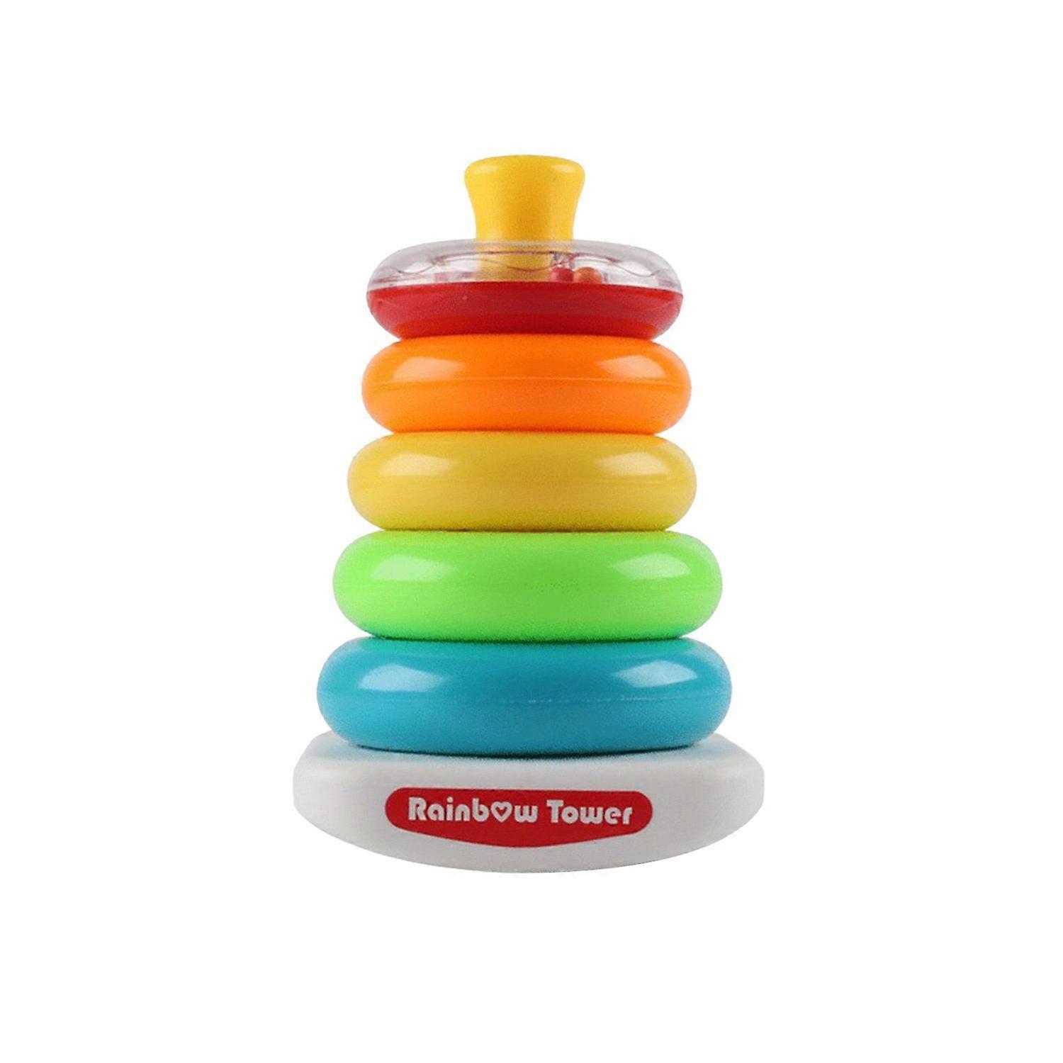 1 Set Rainbow Tower Toy Colorful Plastic Bricks Toy Diverse Gameplay Color Cognitive Preschool Toys