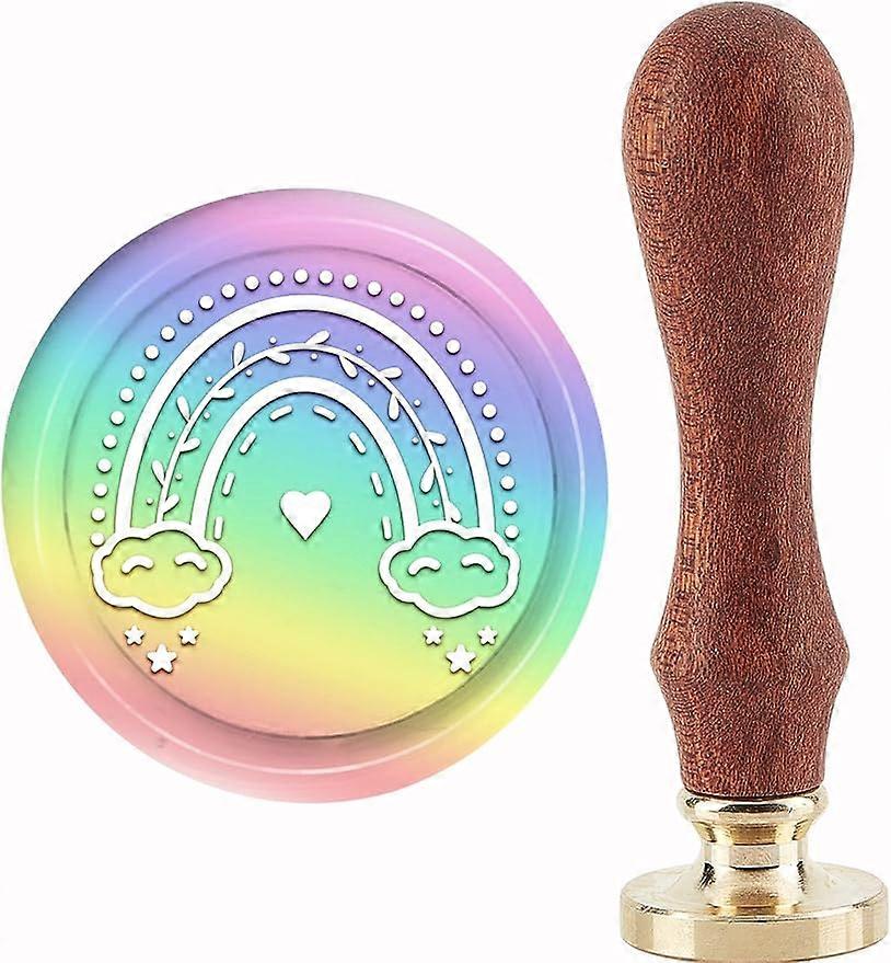 1Set Rainbow Wax Seal Stamp Branch Sealing Wax Stamps Cloud 30mm Retro Vintage Removable Brass Stamp Head with Wood Handle