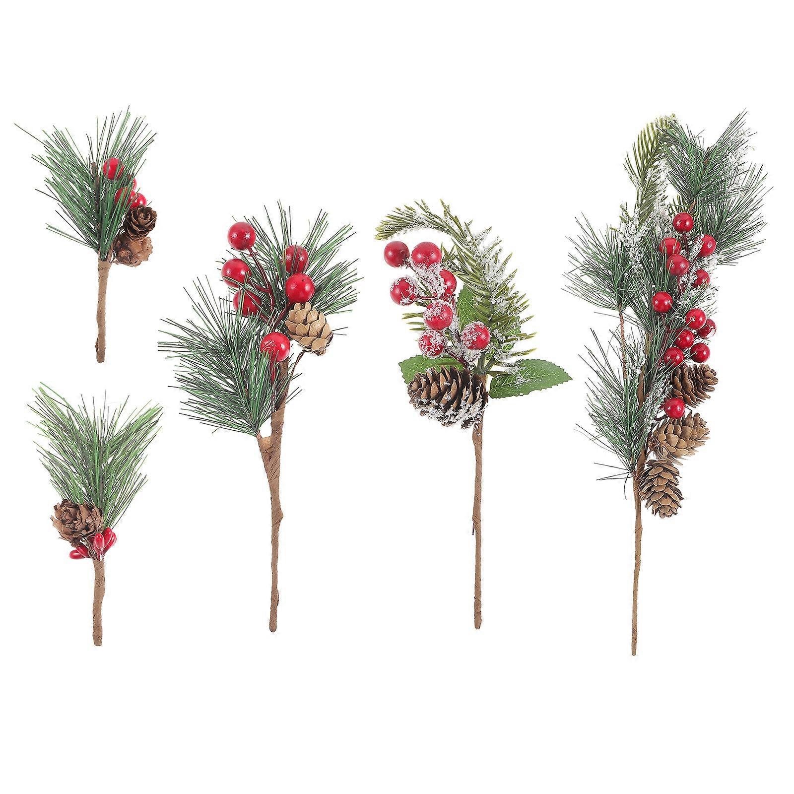 1 Set Artificial Pine Picks Christmas Red Berries Pine Cones Stems Berries Branches Xmas Flower Arrangement