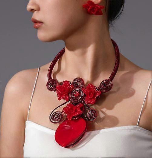 1 Set Chunky African Statement Jewelry Resin Flower Bib Necklace Earring Set Boho Costume Jewelry For Women Girls Wedding Party Prom