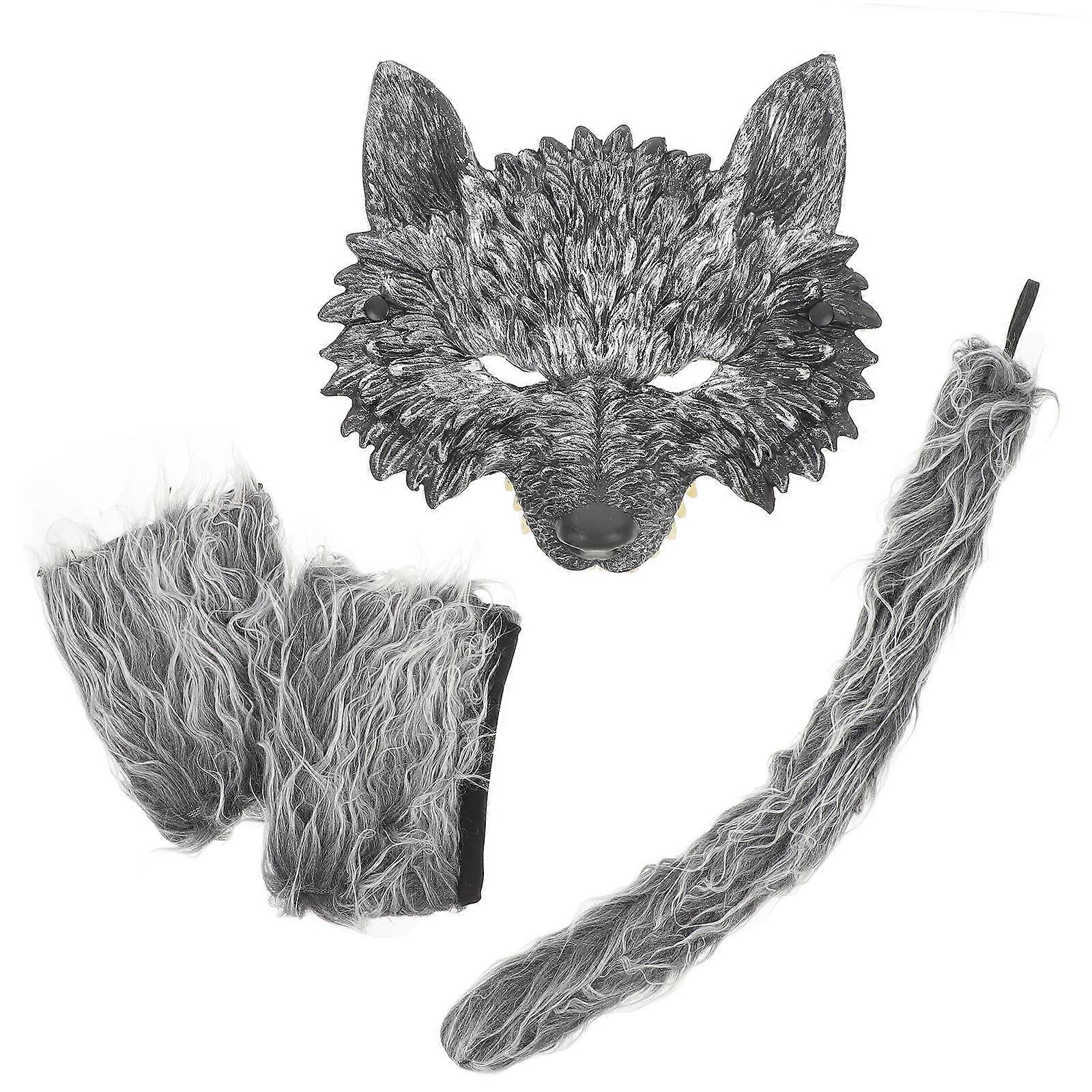 1 Set Animal Costume Wolf Cosplay Mask Gloves Tail for Halloween Dress Up Parties Comfortable Adorable Decorative Props