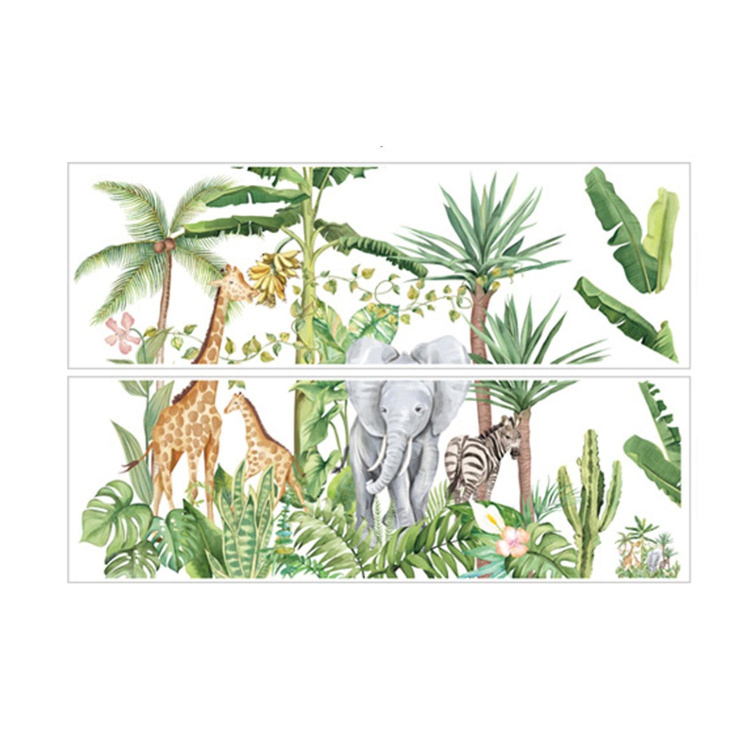 Description:What this wall sticker can offer you is that it depicts a scene of animals living freely in the forest and allows you to decorate your jungle theme room to make your room more interesting.It is this wall sticker features that is easy to apply, remove and reuse without leaving damage or residue, providing the easiest way to decorate your living space.Made of PVC, this product is durable and eco-friendly.Each set has 2pcs stickers in 2 different patterns.It is suitable for decorating living room, bedroom and porch.Item Name: Wall StickersMaterial: PVC StickerFeatures: Stylish, Self-adhesive, Easy to PasteSize Details: Each Sticker Size: 90cm x 30cm/35.43" x 11.81" (Approx.)Notes:Due to the light and screen setting difference, the item's color may be slightly different from the pictures.Please allow slight dimension difference due to different manual measurement.Package Includes:1 Set of Wall Stickers(2Pcs Included)