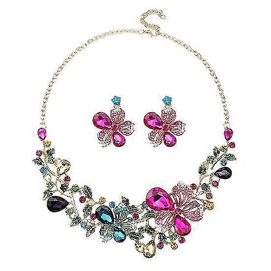 Unique And Elegant: Featuring multicolored flowers and a series of colorful rhinestones, this jewelry set has a simple yet captivating design that highlights your unique elegance.