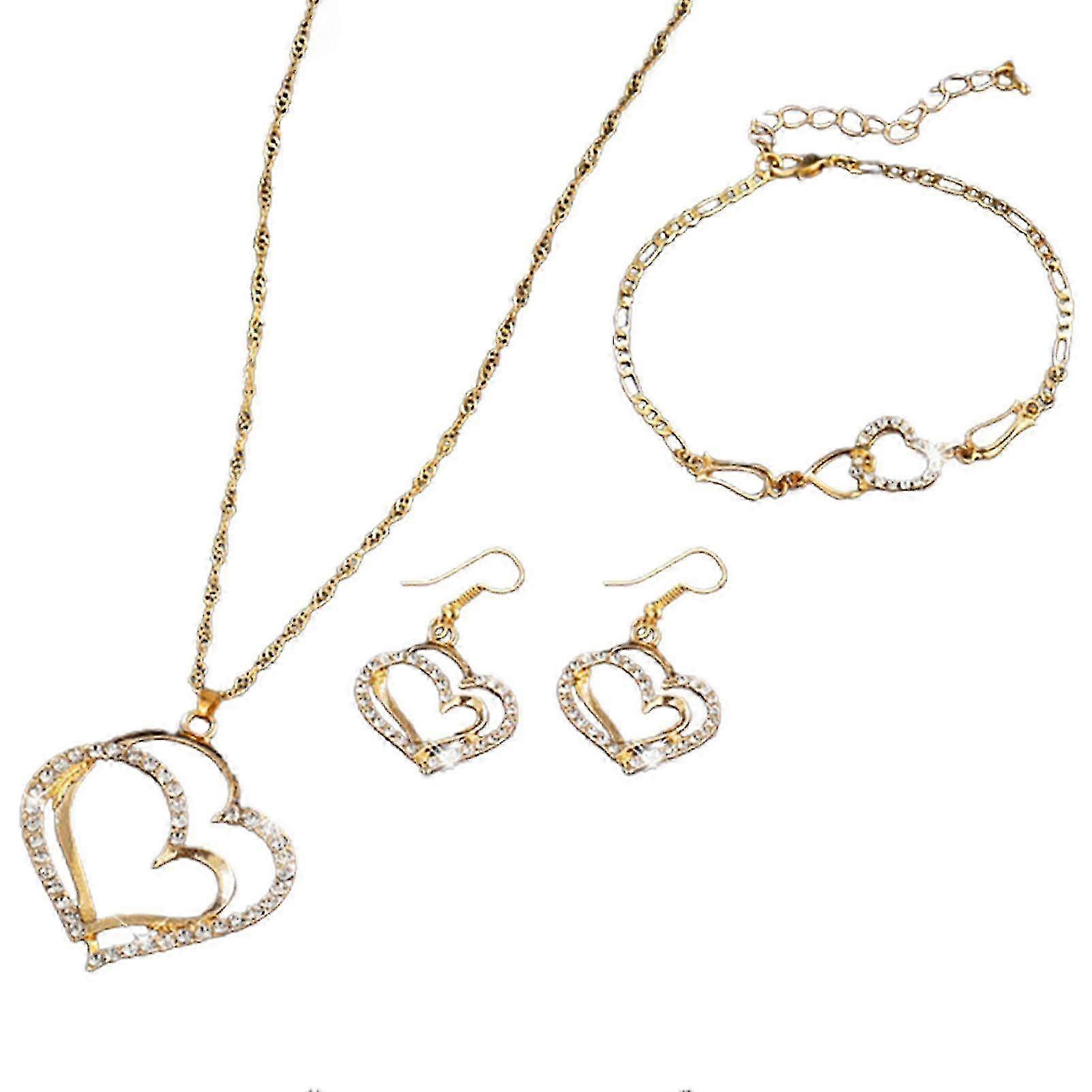 1 Set Women Necklace Bracelet Earrings Hollow Out Double Heart Pendant Jewelry Set for Daily Wear