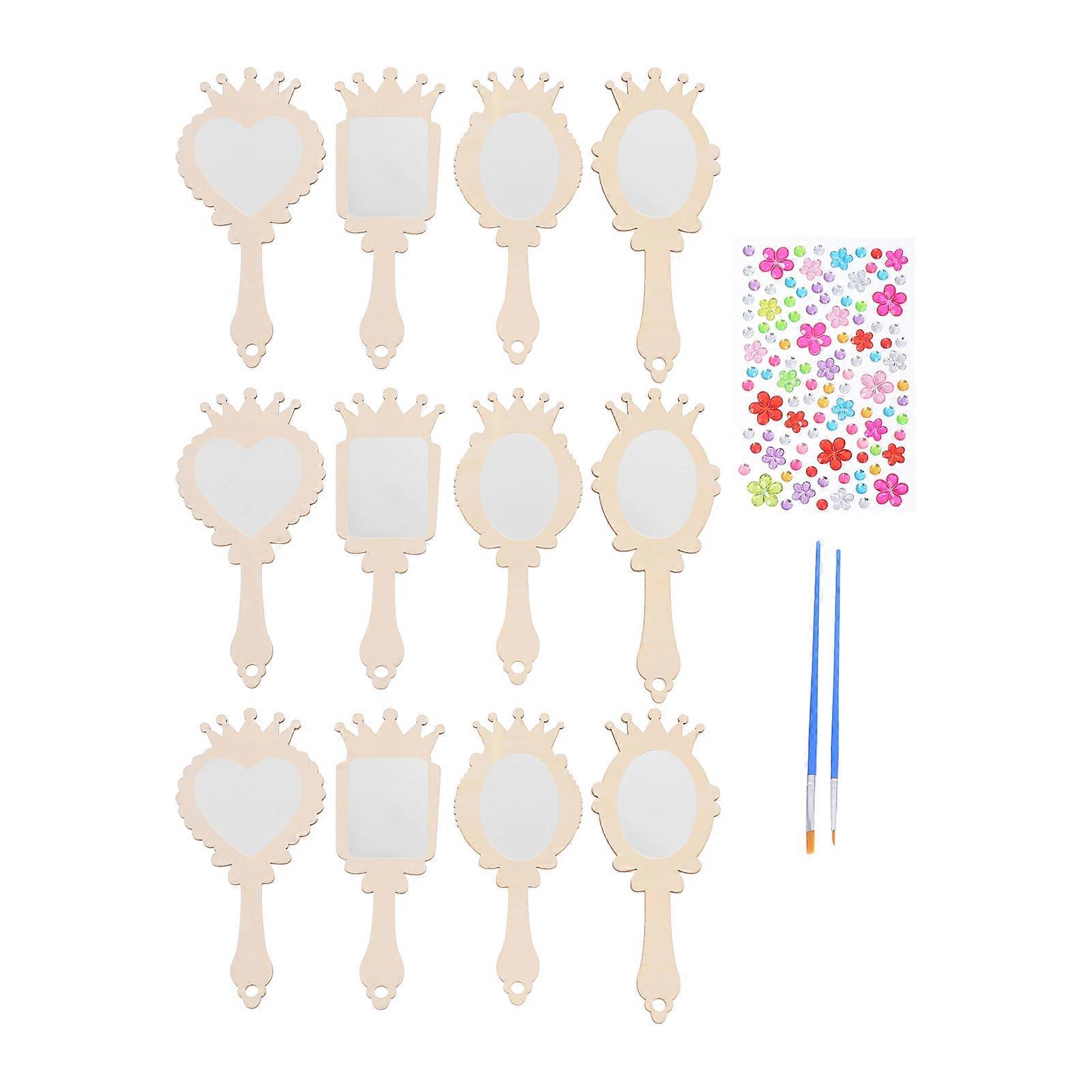 1 Set Wooden Mirror Craft for Kids DIY You Own Princess Mirrors for Girls Paint Wooden Hand Mirror